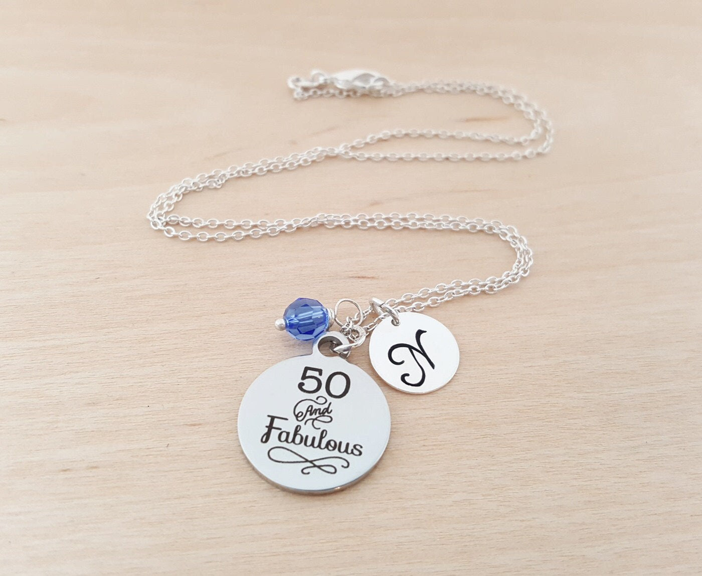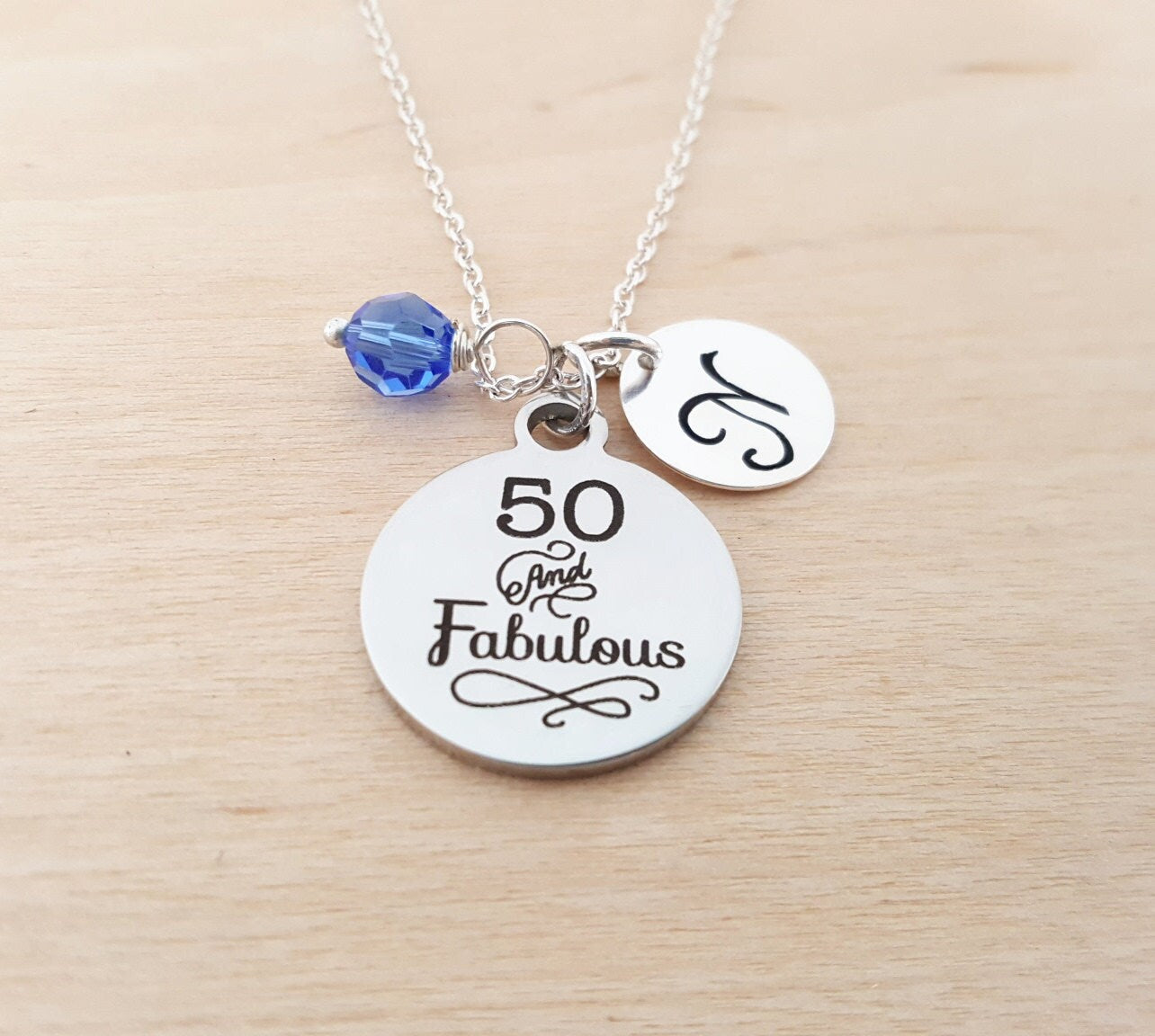 50 and Fabulous Charm Necklace – Birthday Gift with Swarovski Birthstone & Initial | Personalized Jewelry for Her