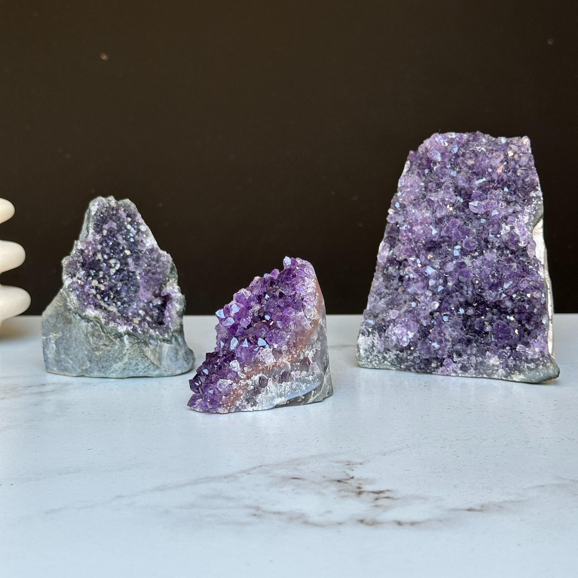 Amethyst Geode Crystals SET with 3 pieces, Natural Amethysts from Uruguay