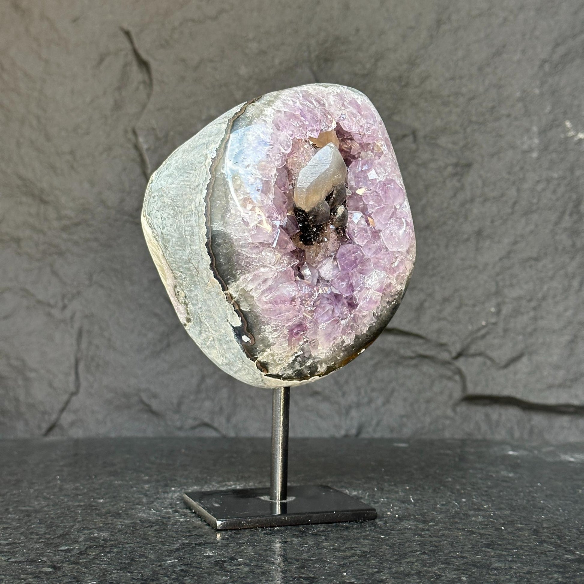 Amethyst Geode with Stand for collectors, A quality amethyst stone from Uruguay