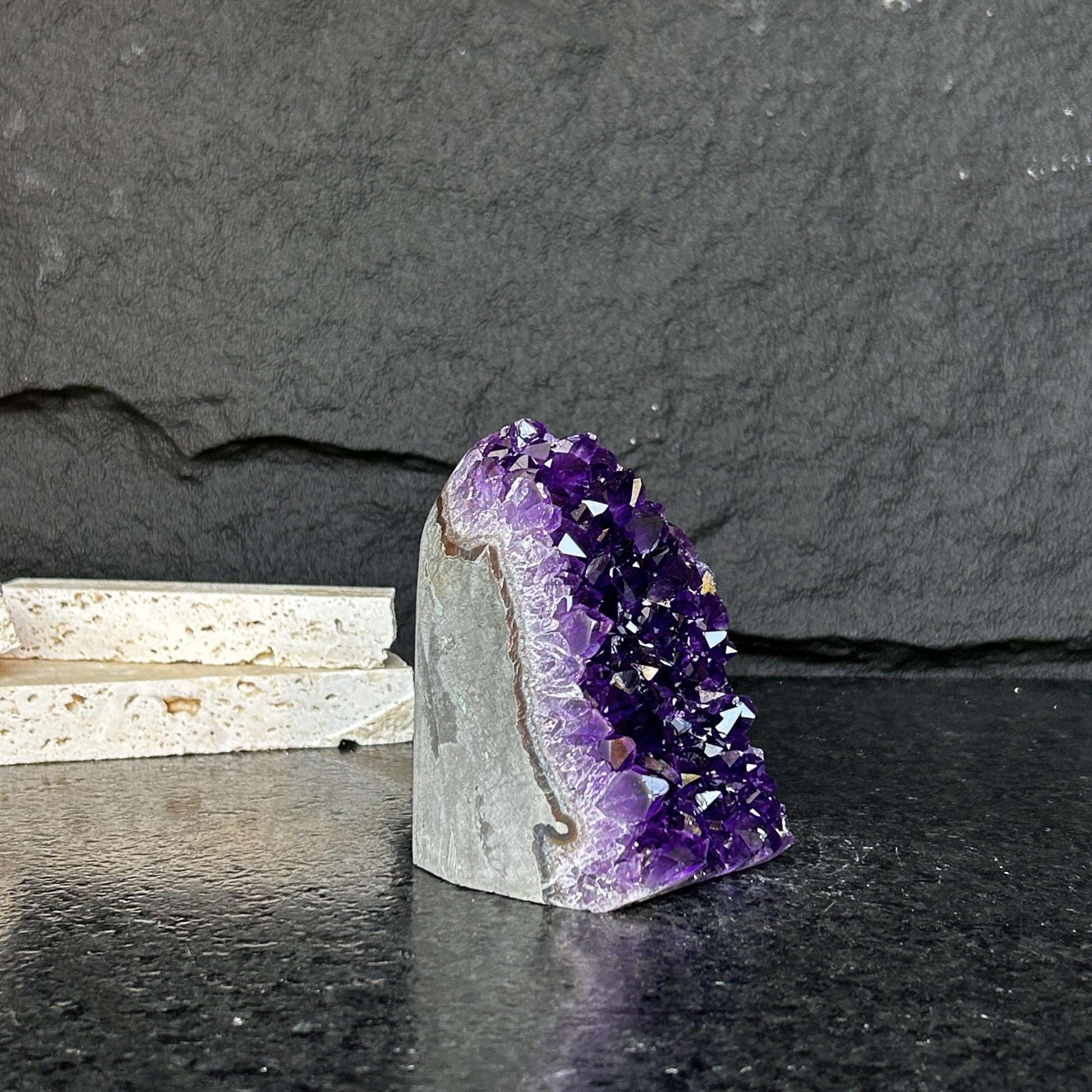Its vibrant deep purple color is characteristic of the geodes extracted from URUGUAY, one of the few places in the world where you can find. It was extracted respecting the strict standards of open-pit mining in our country that ensure the safe work.