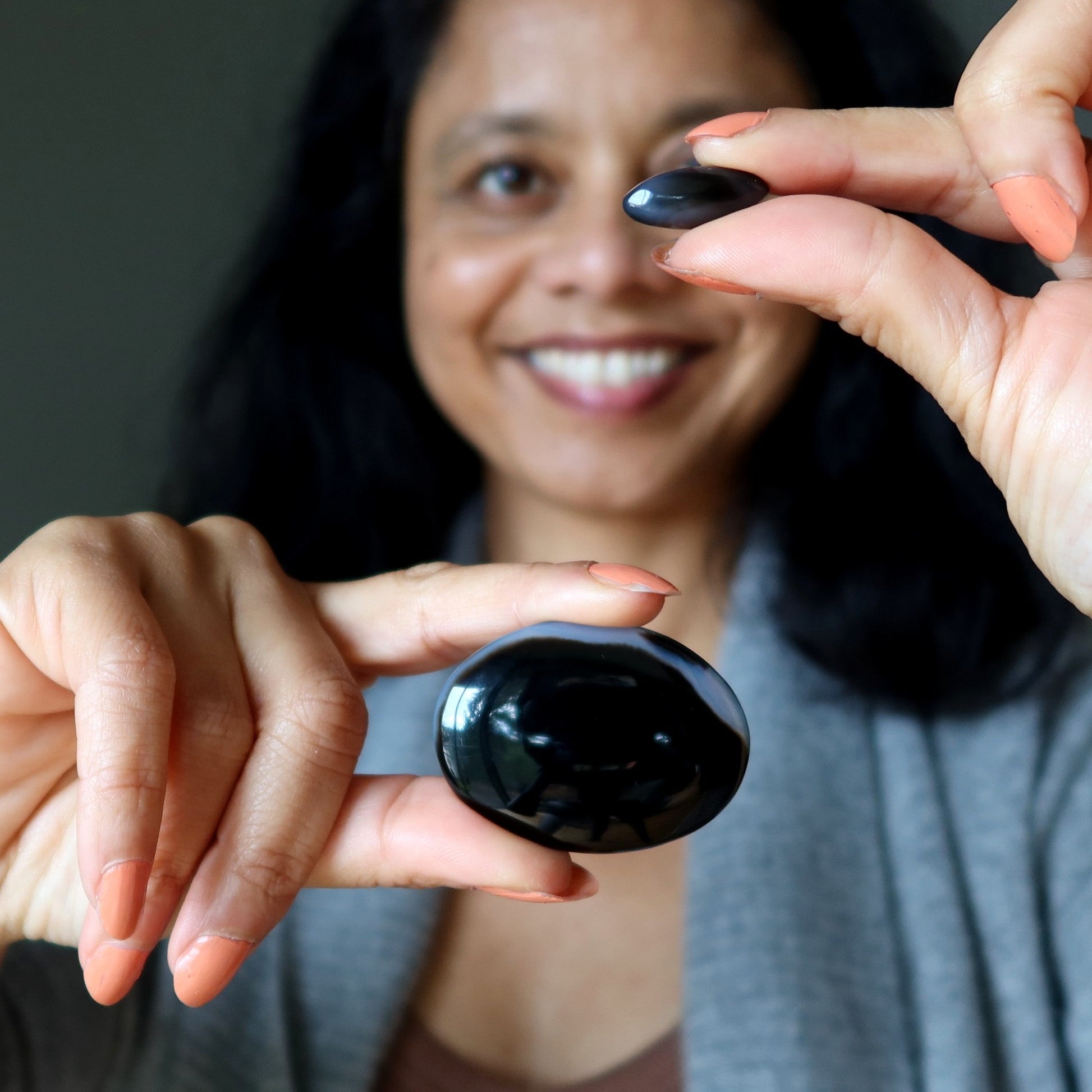 This stunning Black Agate crystal set is for power and protection. Use 18 gems to form safety grids, do positive energy layouts, create jewelry, and whatever your heart desires!