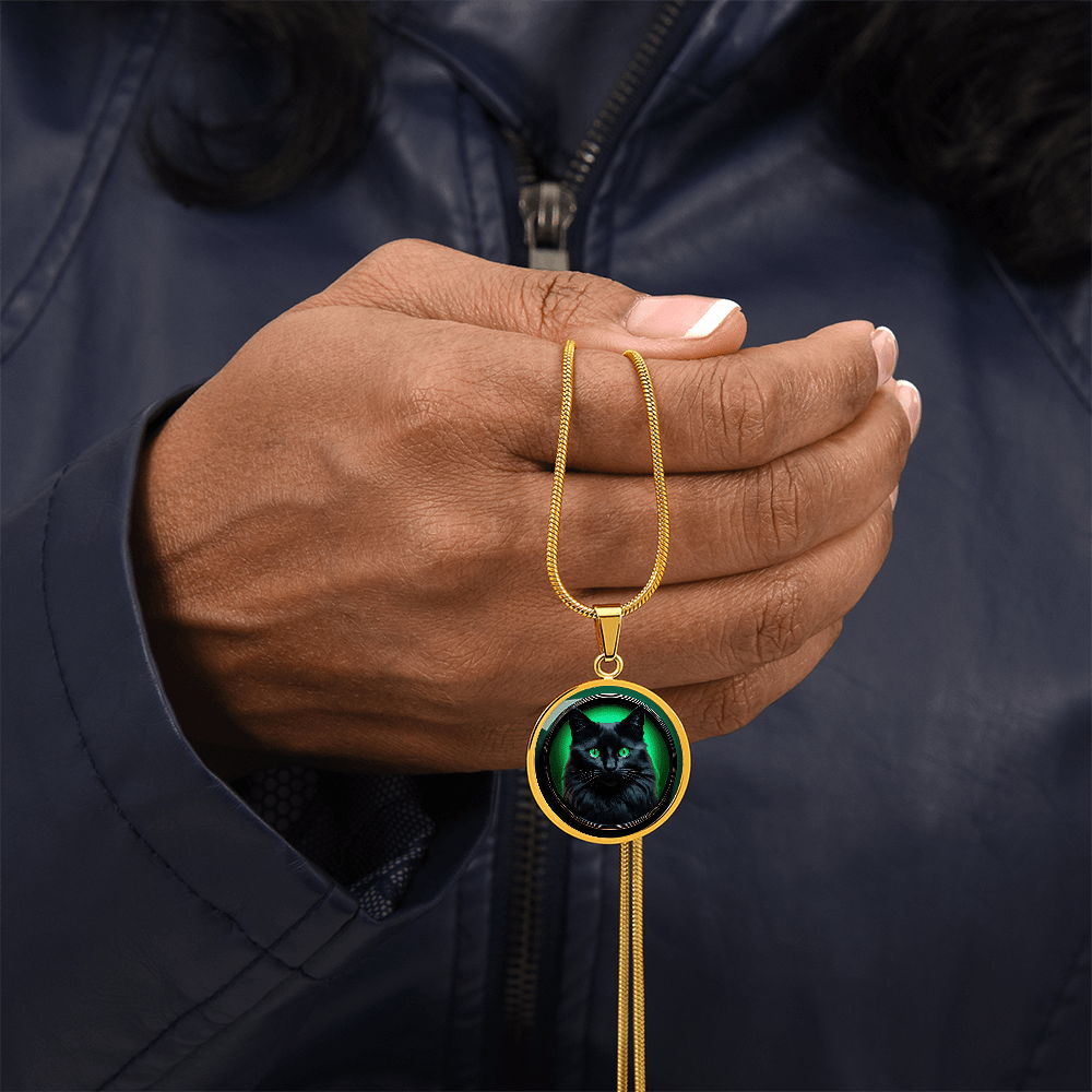 This distinctive jewelry piece is crafted from high-quality surgical steel and includes an option for an 18k gold finish. It makes a thoughtful keepsake for yourself or a loved one. The adjustable luxury necklace measures 18 to 22 inches (45-56 cm), with a circular pendant sized at 0.9” by 0.9” (23.5mm x 23.5mm).