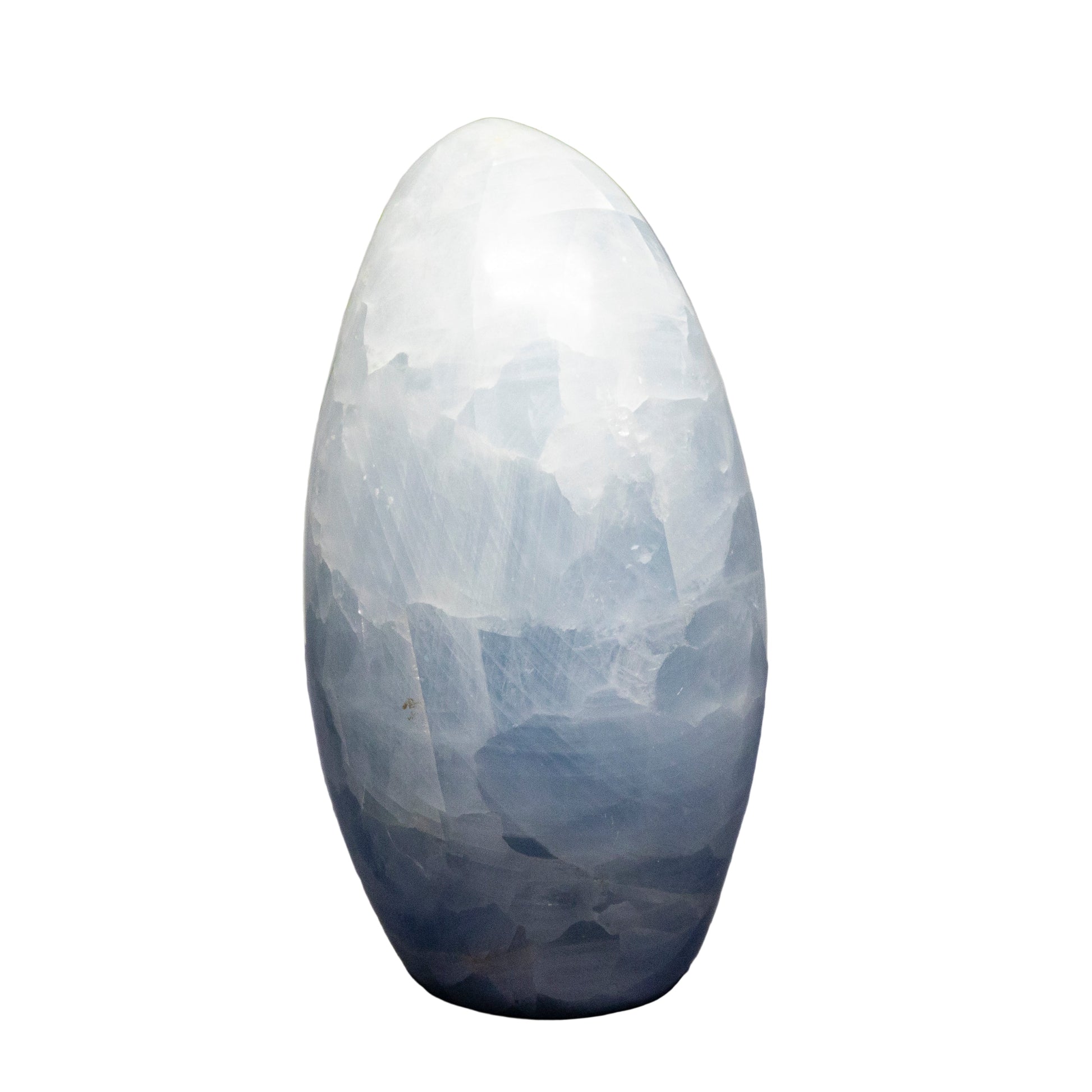 Blue Calcite Freeform offers powerful metaphysical properties that promote tranquility and clear communication. Each uniquely shaped specimen features a soothing blue hue with natural variations in pattern and opacity. This high-quality crystal serves as both a striking display piece and an effective tool for meditation, chakra healing, or energy work. Ethically sourced.