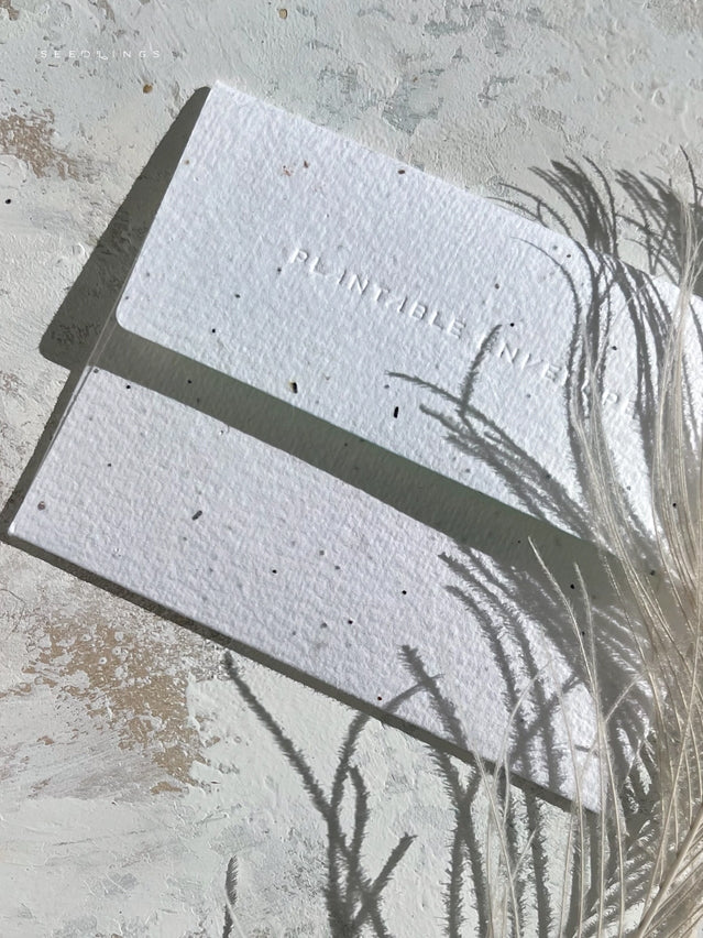 This is a birthday card with a built in little gift. All Seedlings greeting cards have a PLANTABLE seed paper envelope which is embedded with non-invasive wildflower seeds. This seed paper is made of a biodegradable eco-paper created with post-consumer materials - no trees harmed for this paper! When planted, our envelopes compost away leaving only flowers behind. Blank inside, these cards are printed on premium paper and are all accented with foil details.