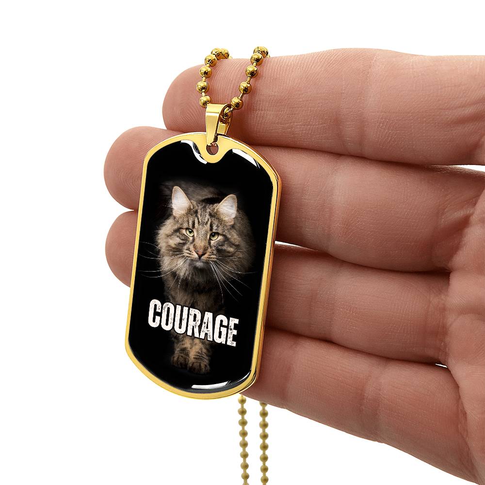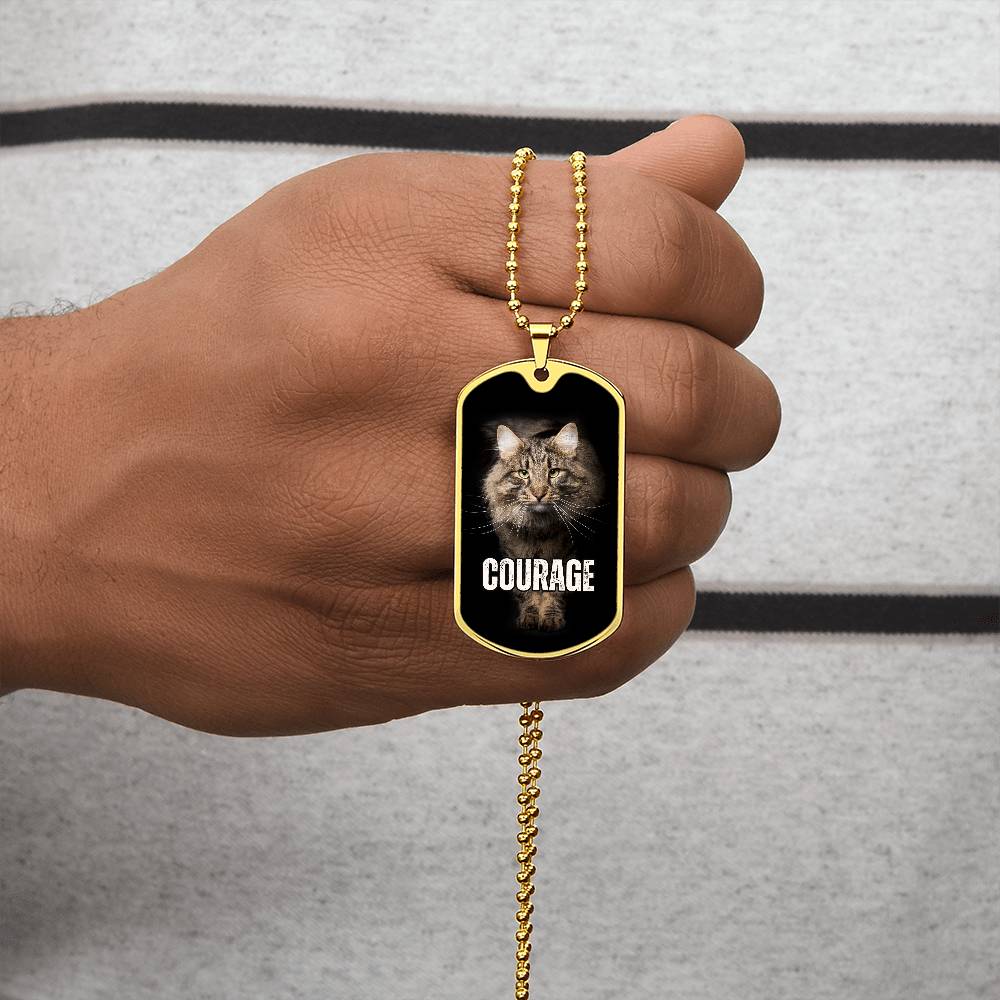 Our best-selling Courage Necklace is designed to surpass your highest expectations. Made from premium surgical steel with an optional 18k gold finish, this patent-pending piece is the perfect keepsake for you or a loved one. The luxury military necklace measures 24" (61cm) and features an upgraded clasp, accompanied by a dog tag sized 28.5mm x 51mm.