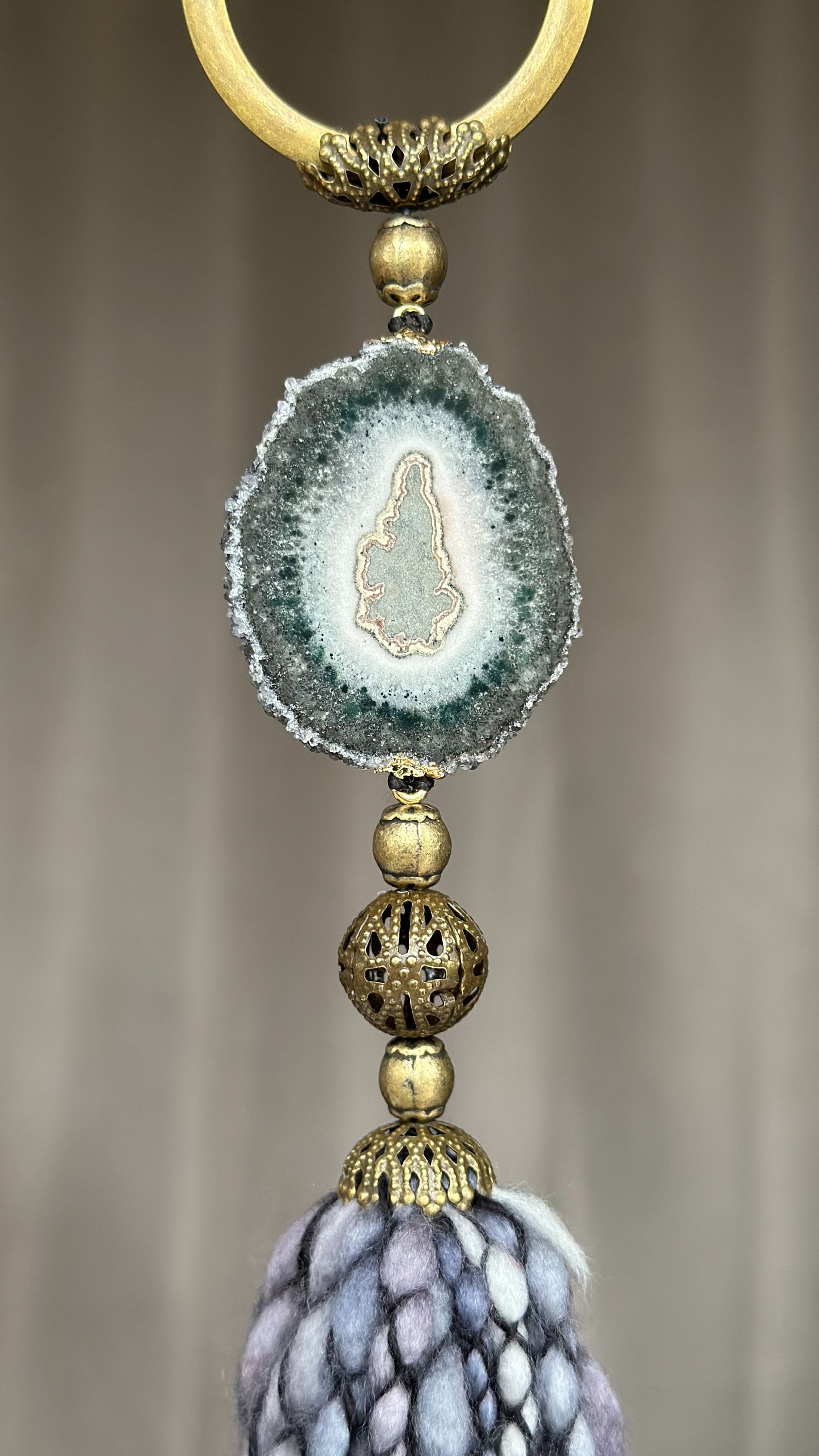 Crystal Garland with Stalactite Stone and Merino Wool Tassels, One of a kind decor piece, Natural Wall Hanging, multiple uses Jasper Gift