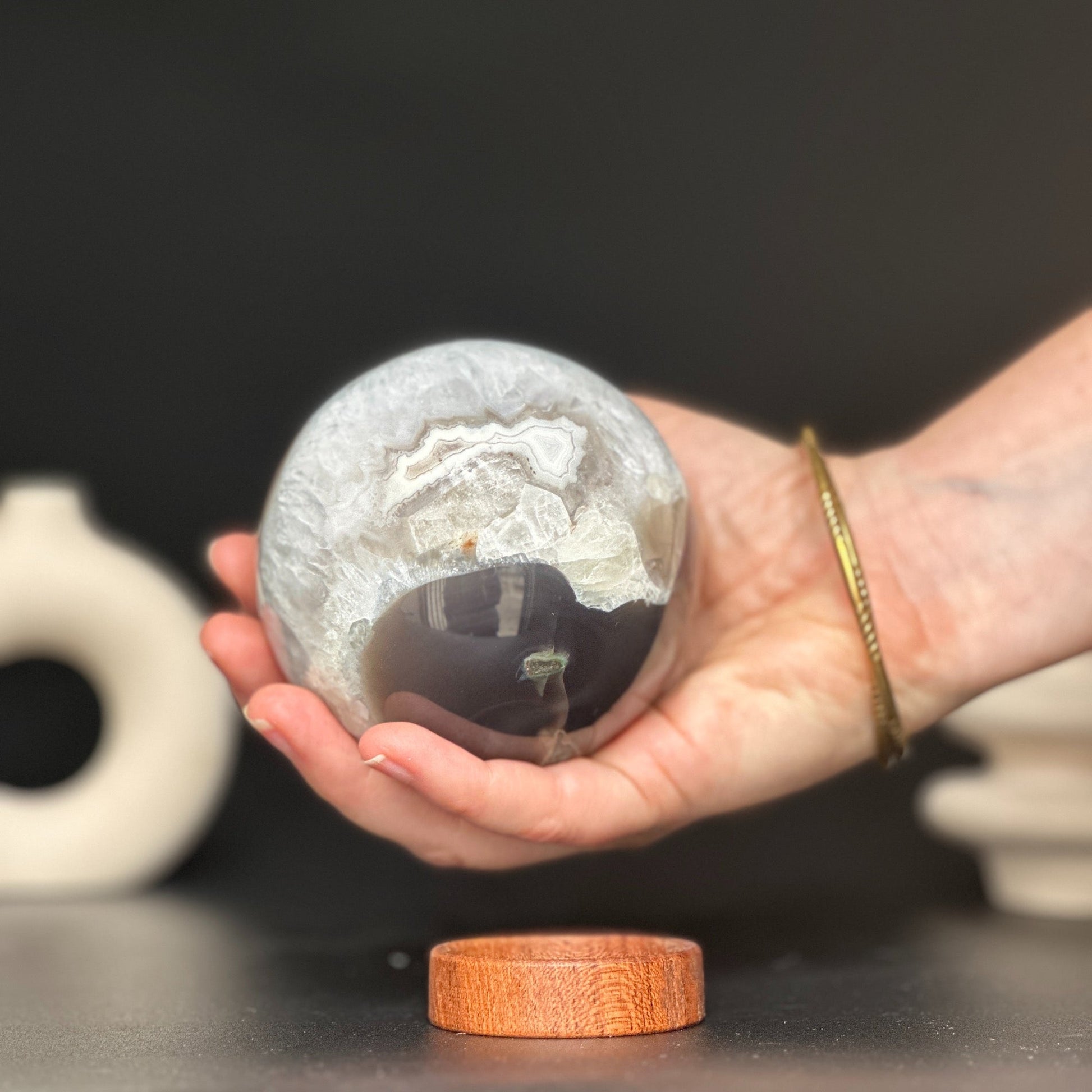 This piece of natural wood designed especially to hold the sphere completes a great product, making it more aesthetic and safe (protects it from falls).
