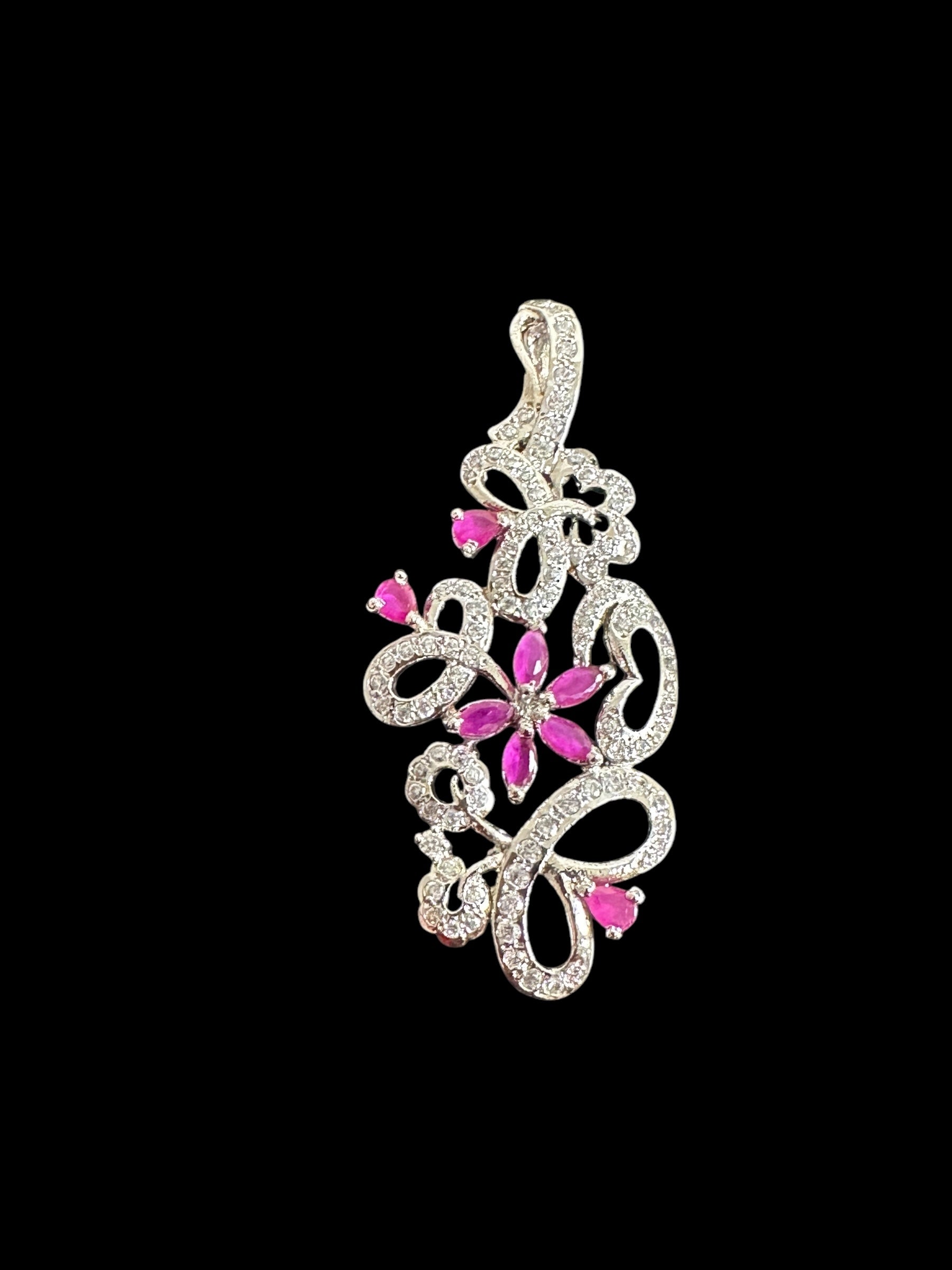 Cz pendant - silver plated with red / ruby cz stones ( READY TO SHIP )