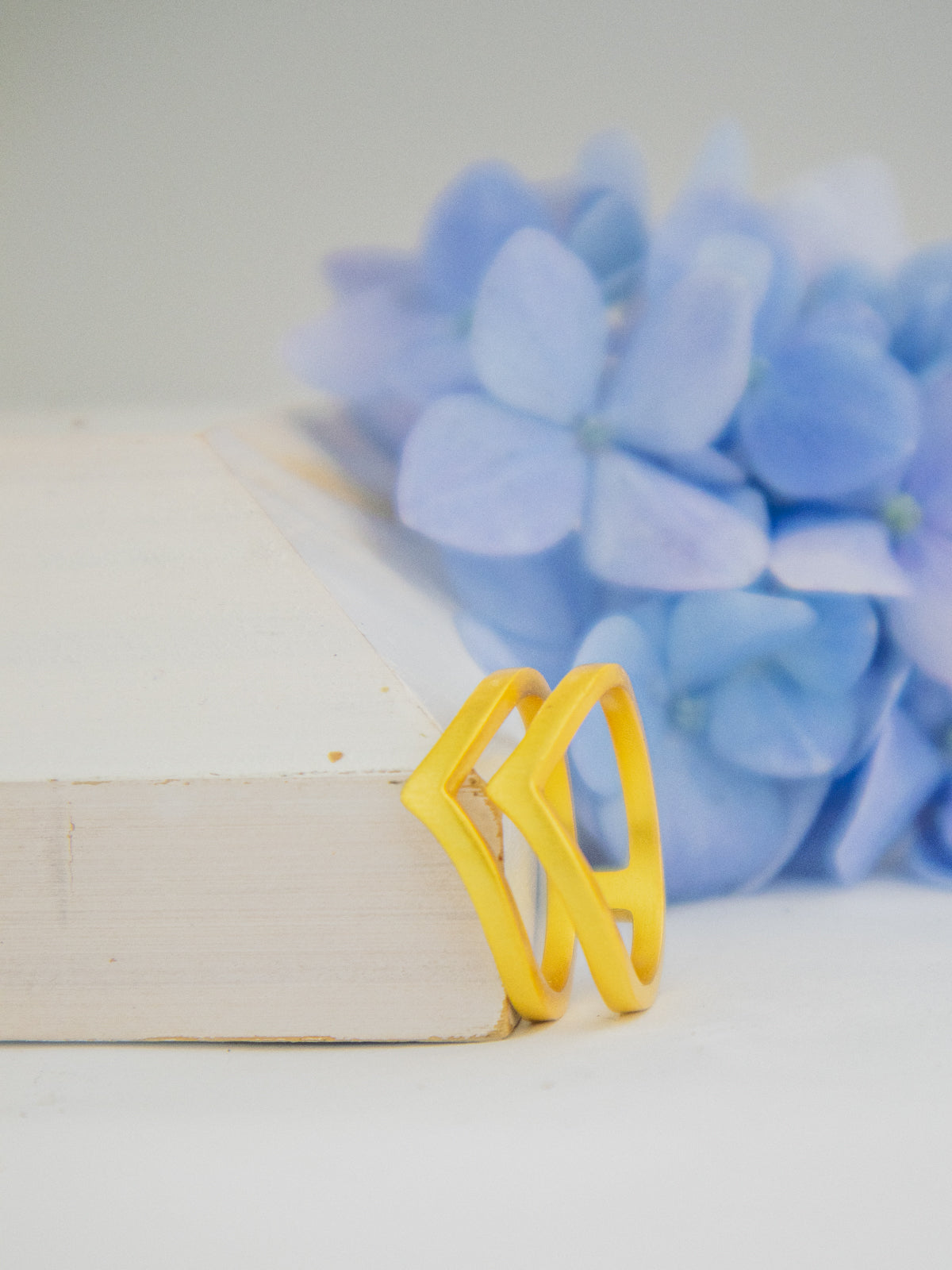 The beauty of this chevron ring is in its simple, double stacked, wave-like design. Wear it pointing up or down depending on your preferred look.
