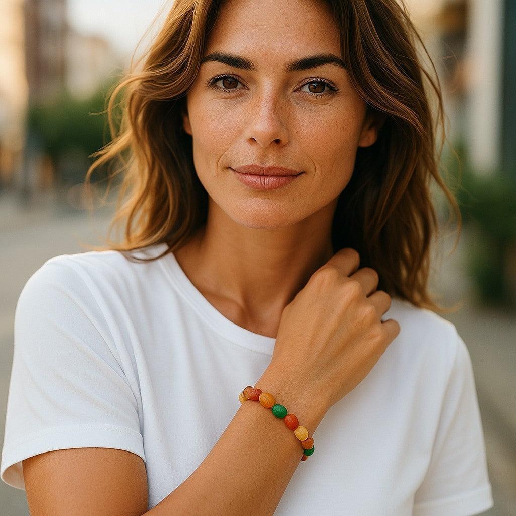 Agate is known for its grounding, stabilizing, and balancing properties. Wearing this bracelet promotes emotional harmony, inner strength, and a sense of calm, while its colorful design adds a lively and stylish touch to any outfit.
