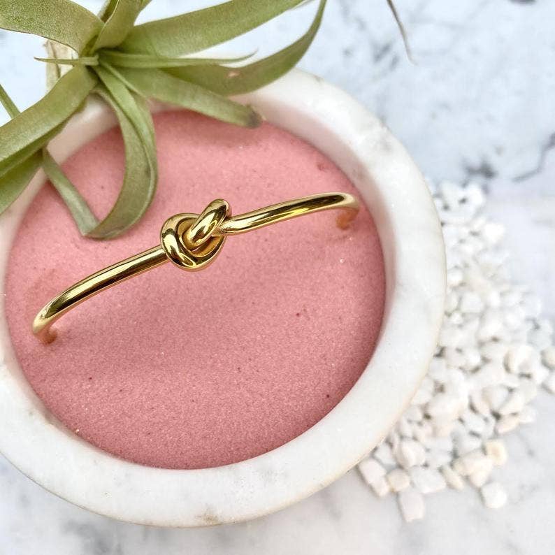 Sleek and classic adjustable, gold, knot cuff. Fits any wrist. Perfect on it's own or in your bracelet stack.