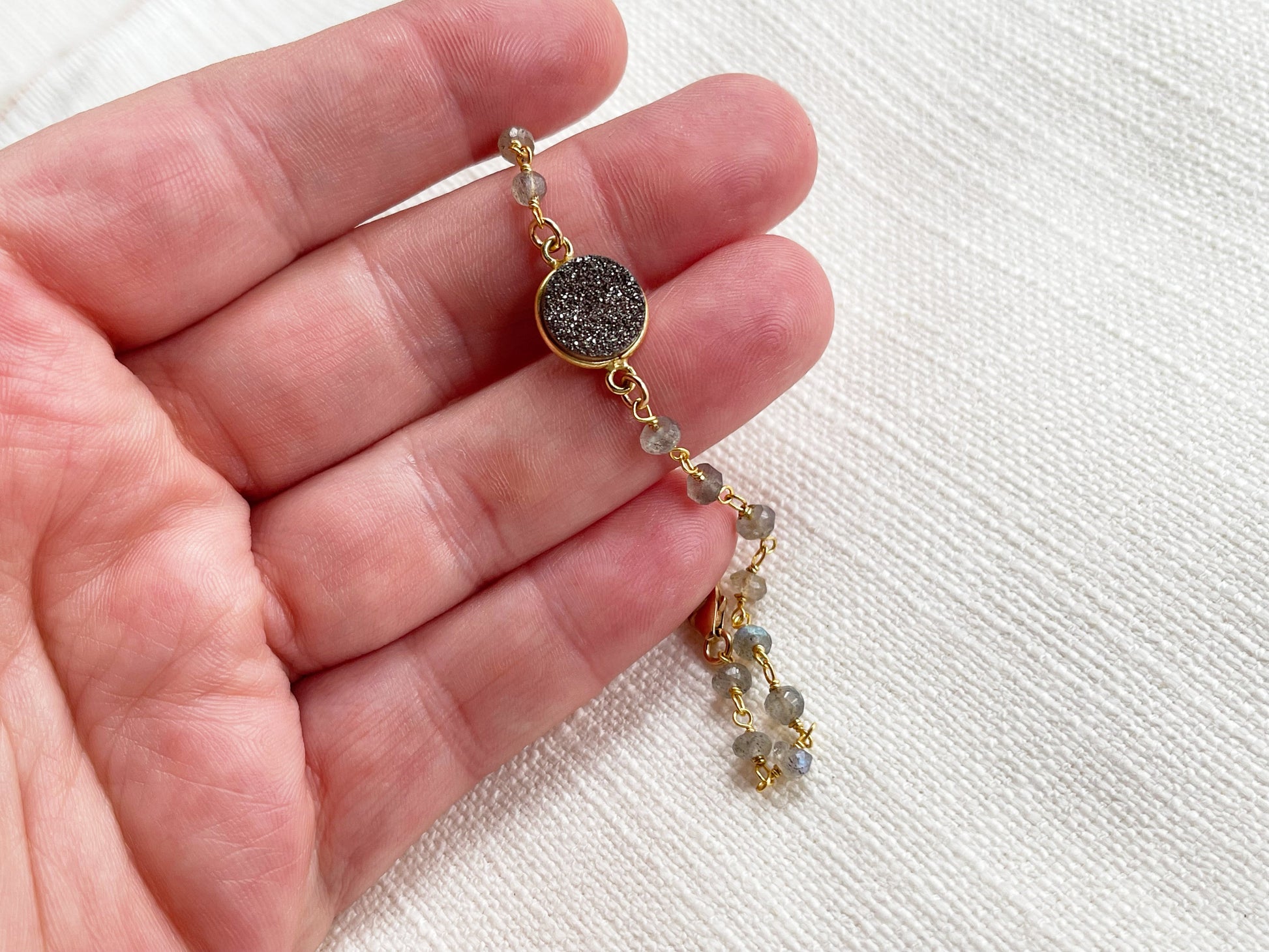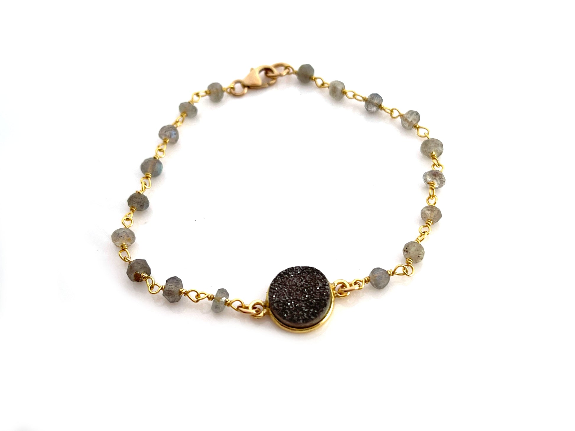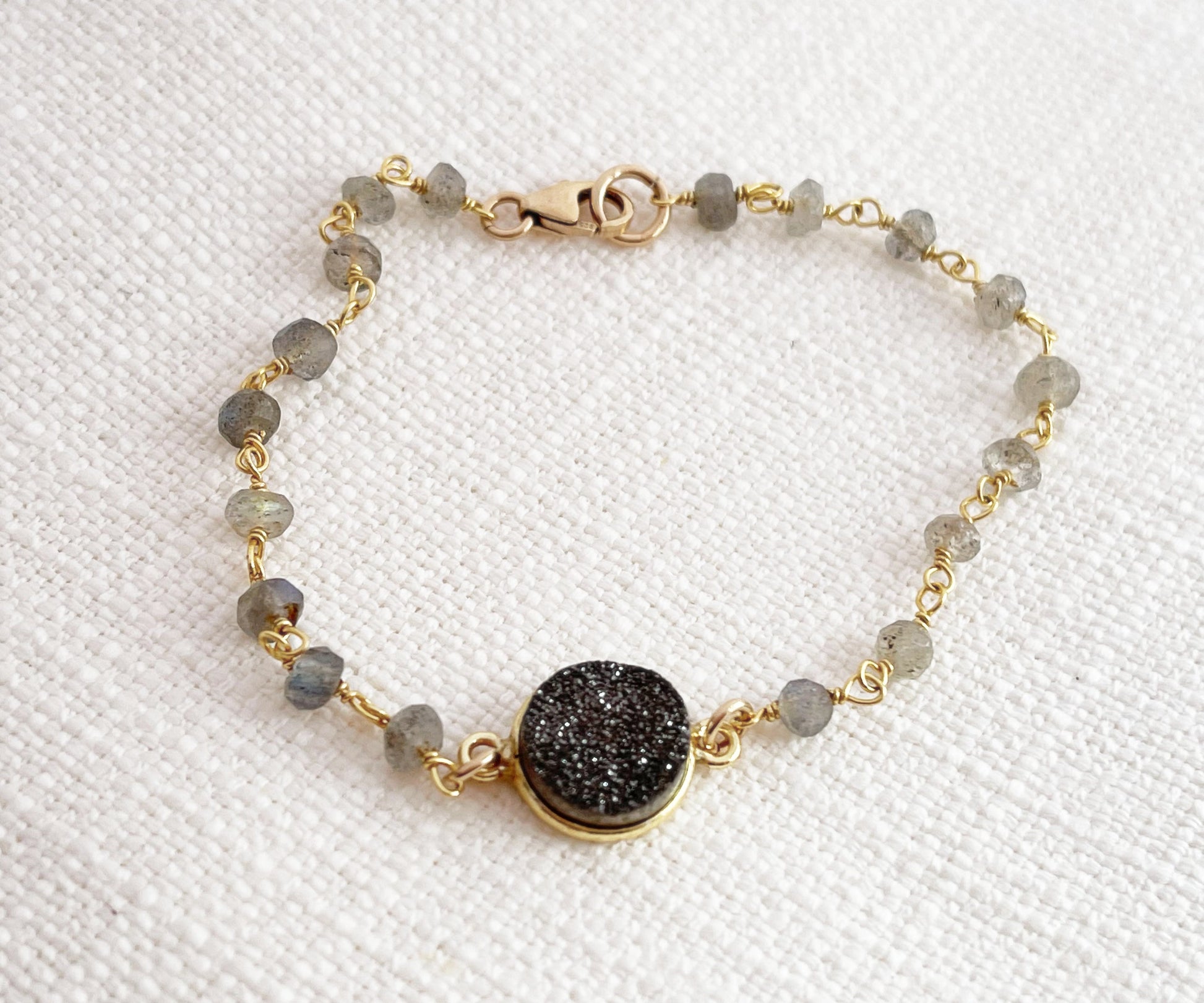 Labradorite and Druzy Gemstone 14k Gold Filled Bracelet