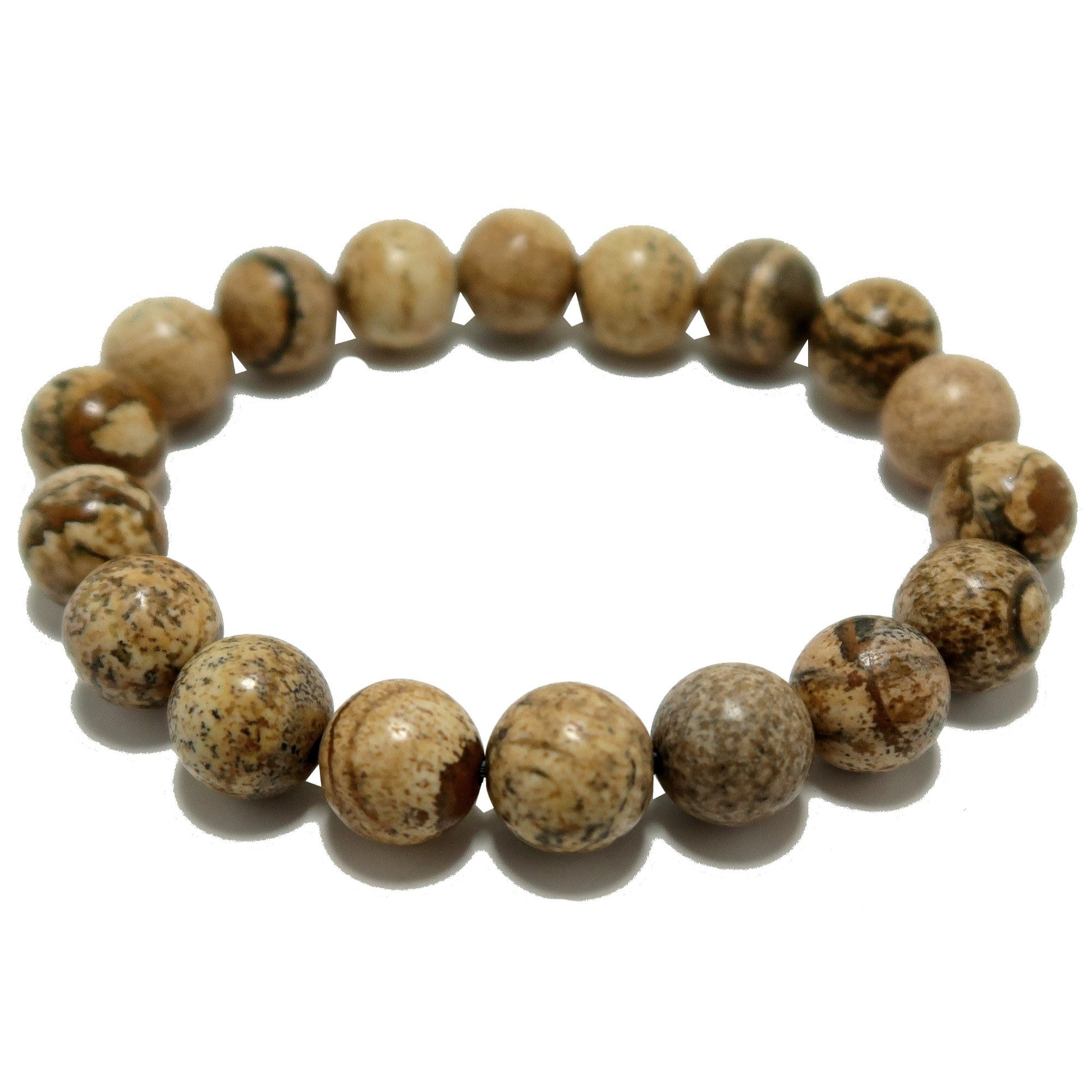 Your bracelet showcases natural and untreated Jasper stones. The stones show unique patterns and are polished into round beads and strung on a sturdy elastic stretch cord. Each stone differs. Beaded in the Satin Crystals studio in the USA.