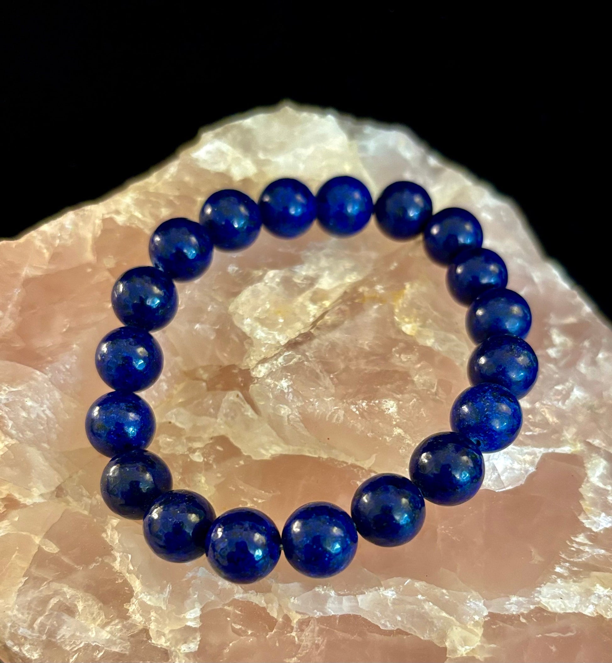 Channel clarity and confidence with this Lapis Lazuli Crystal Bracelet, handcrafted with deep royal blue 8mm, 10mm, or 12mm beads. Known as the “Stone of Wisdom,” Lapis Lazuli is believed to enhance intuition, mental focus, and spiritual insight. With natural flecks of gold and white, each bead is uniquely beautiful — just like the energy it helps you unlock.