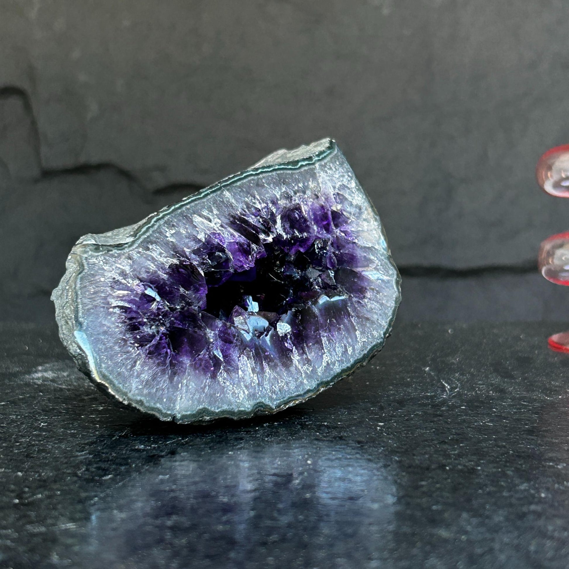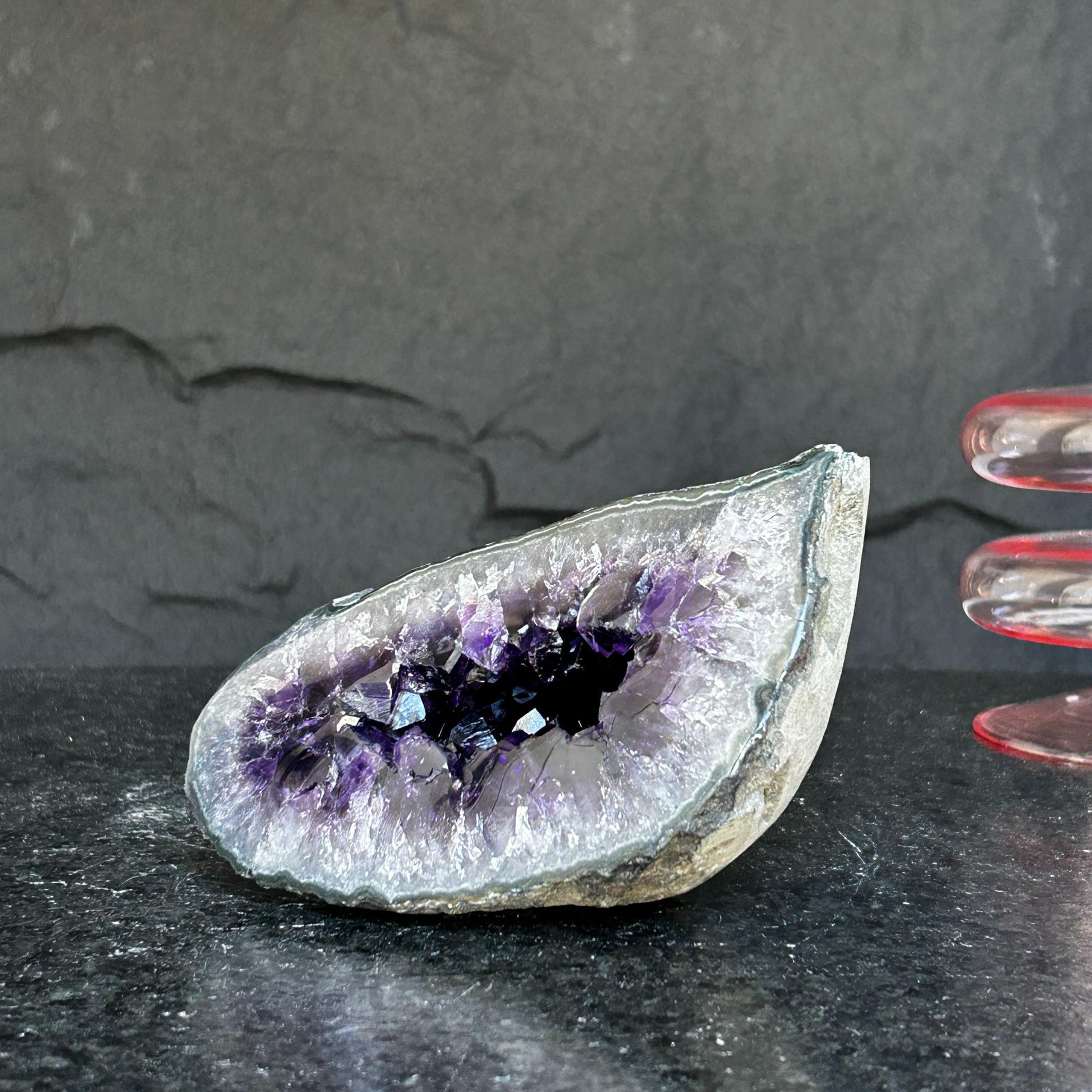 This amethyst geode with agate formations has the highest quality of the semi precious stones.