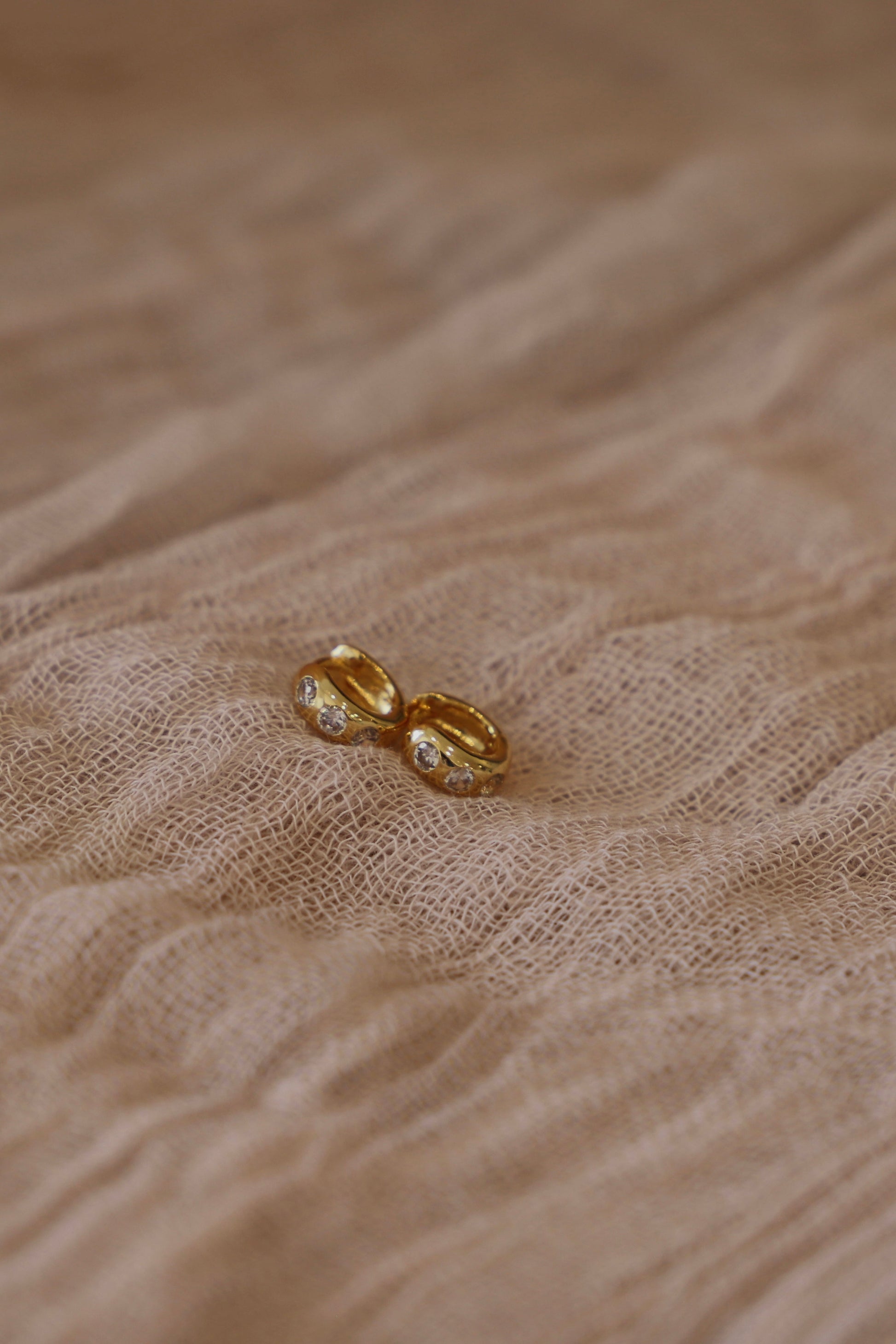 Introducing the Maeve Huggies - the perfect addition to your earring collection. These mini huggies come adorned with sparkling CZ charms, adding a touch of sparkle to any look. Expertly crafted, these huggies are a must-have for any jewelry lover.