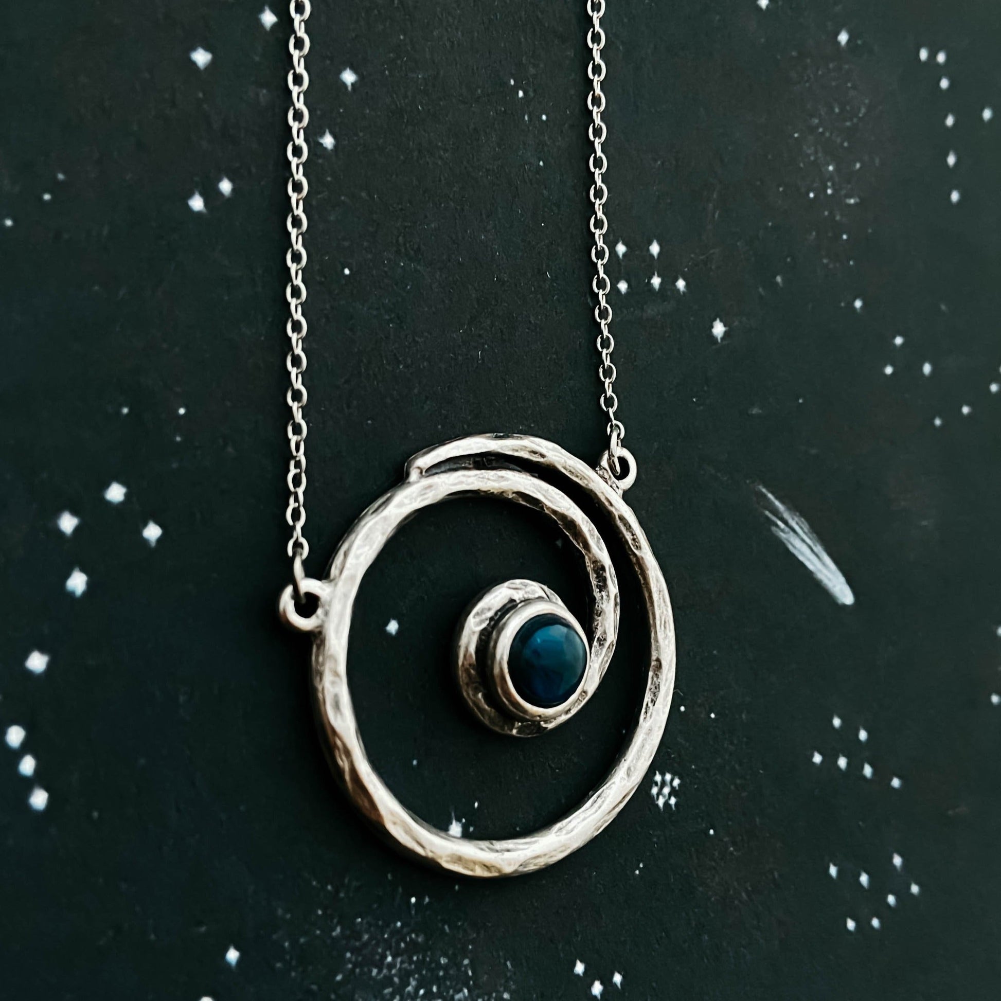 Milky Way Necklace - Spiral Silver Pendant with Labradorite