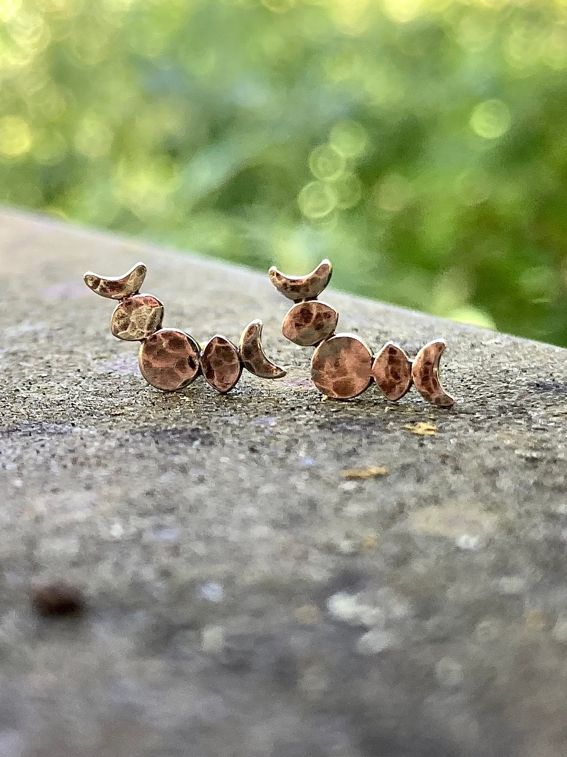 These moon phase stud earrings are designed to flow beautifully with the natural contour of your earlobe.