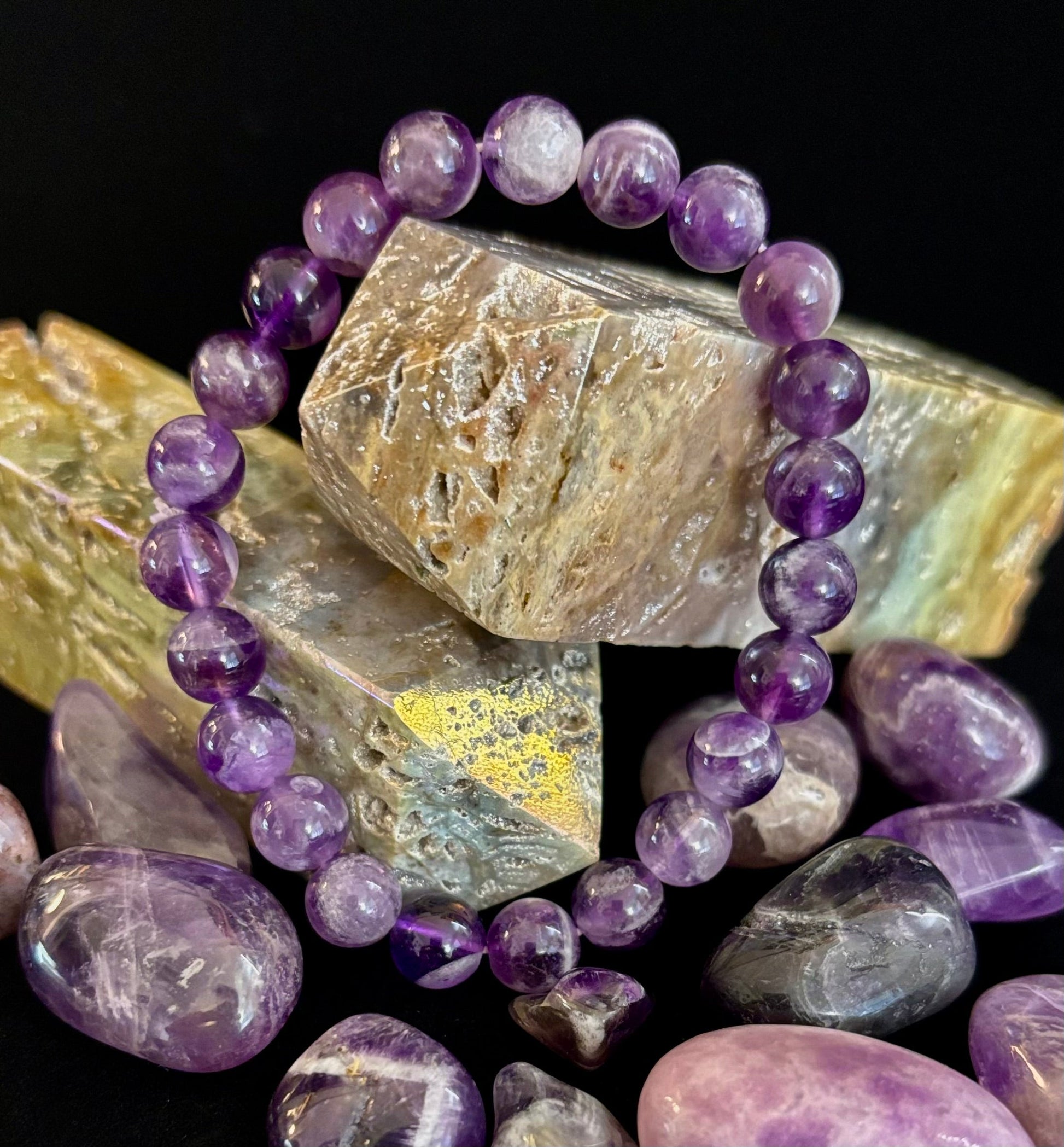 Natural Amethyst Healing Bracelet – 8mm, 10mm, or 12mm Beads