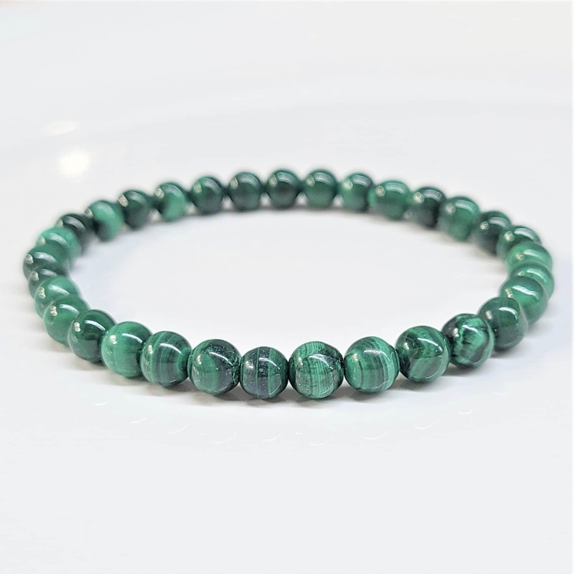 Natural Malachite Round Bead Bracelet - Abundant Love