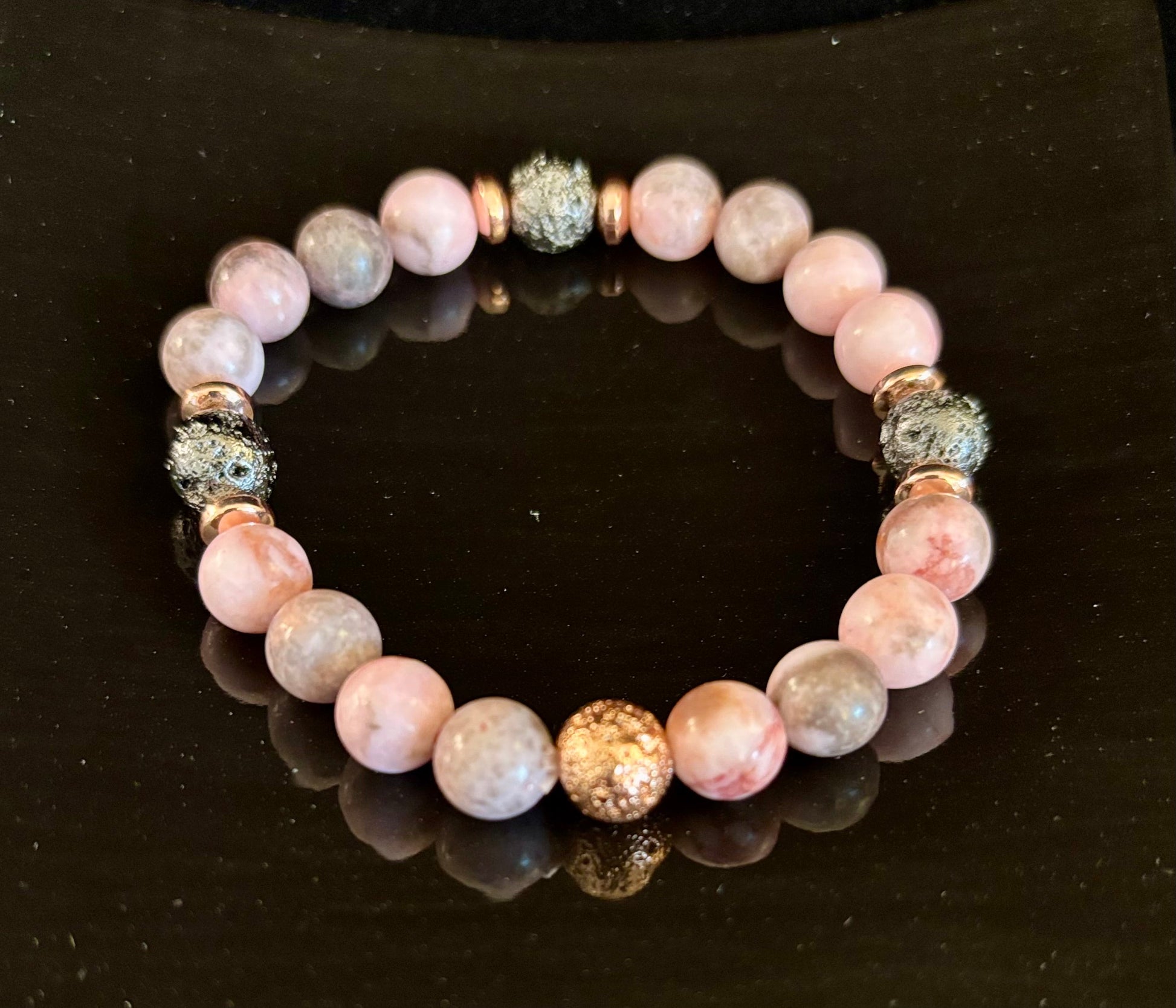 Pink Zebra Jasper & Rose Gold Toned Lava Stone Bracelet