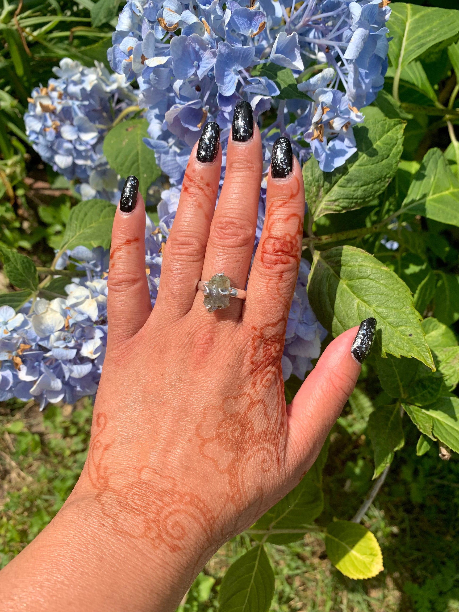 If you love labradorite, you'll adore this simple statement ring that showcases the natural, organic beauty of the stone. The dark grey gem reflects beautiful shades of blue, green, gold, and purple as the light hits it from different angles - really brought to life by the raw, rough shape.