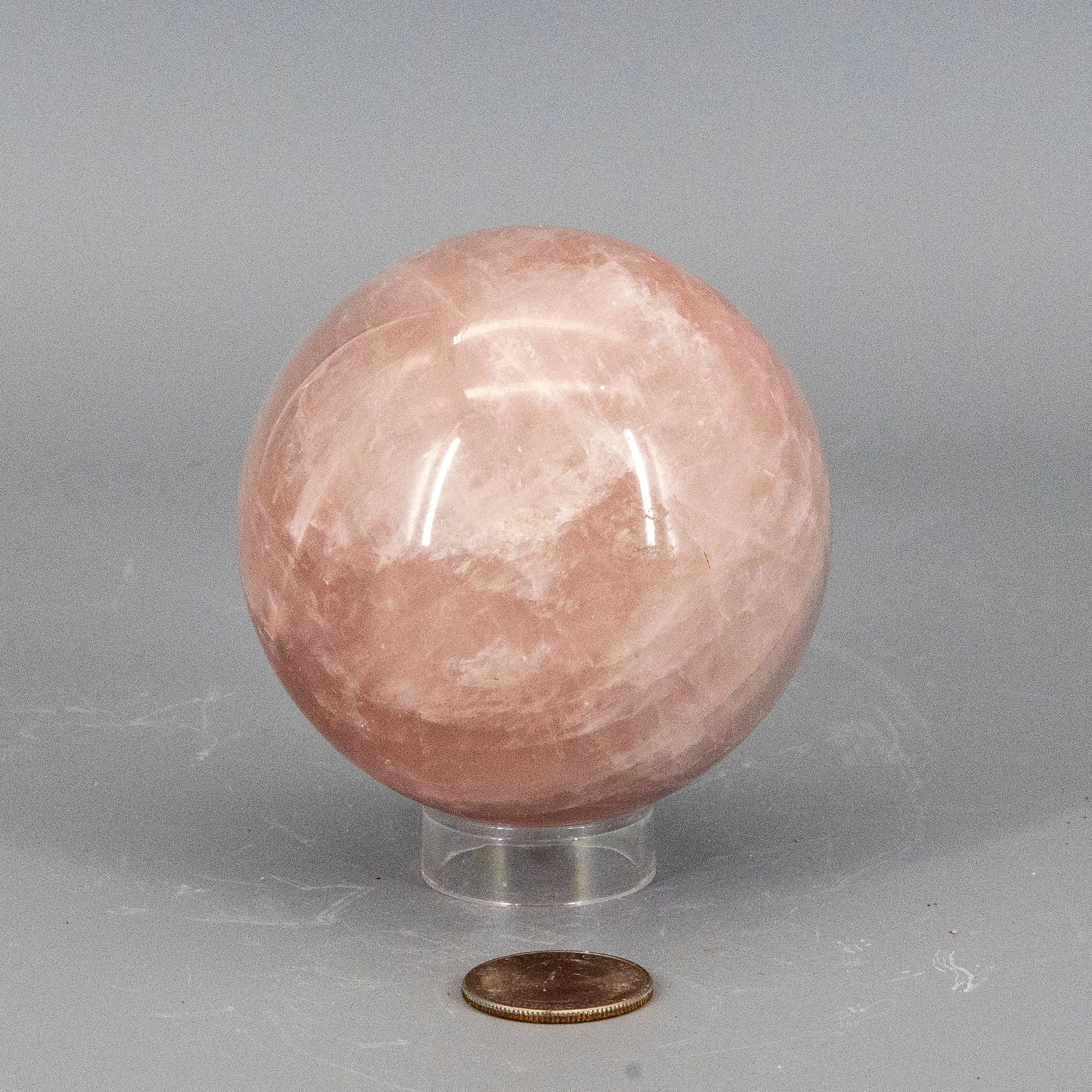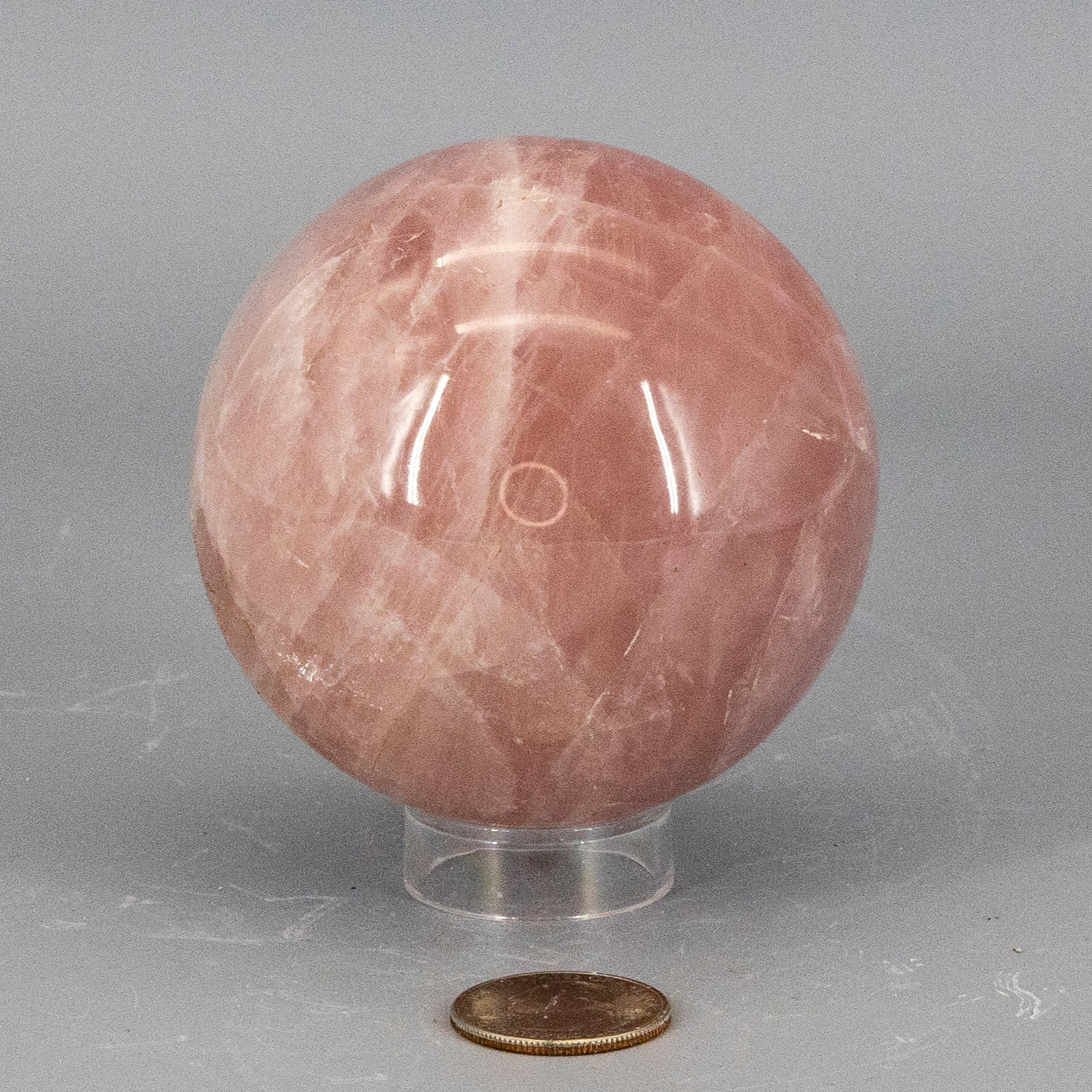 The Rose Quartz XL 80mm Sphere is a finely polished crystal sphere measuring 80mm in diameter. Known for its soothing pink hue, this natural rose quartz piece offers both aesthetic appeal and energetic harmony. Ideal for meditation or as a decorative element, its substantial size enhances its presence, making it a powerful focal point in any space seeking balance and calm. Crafted with expert care, this sphere embodies the gentle energy of rose quartz, promoting emotional healing and peaceful environments.