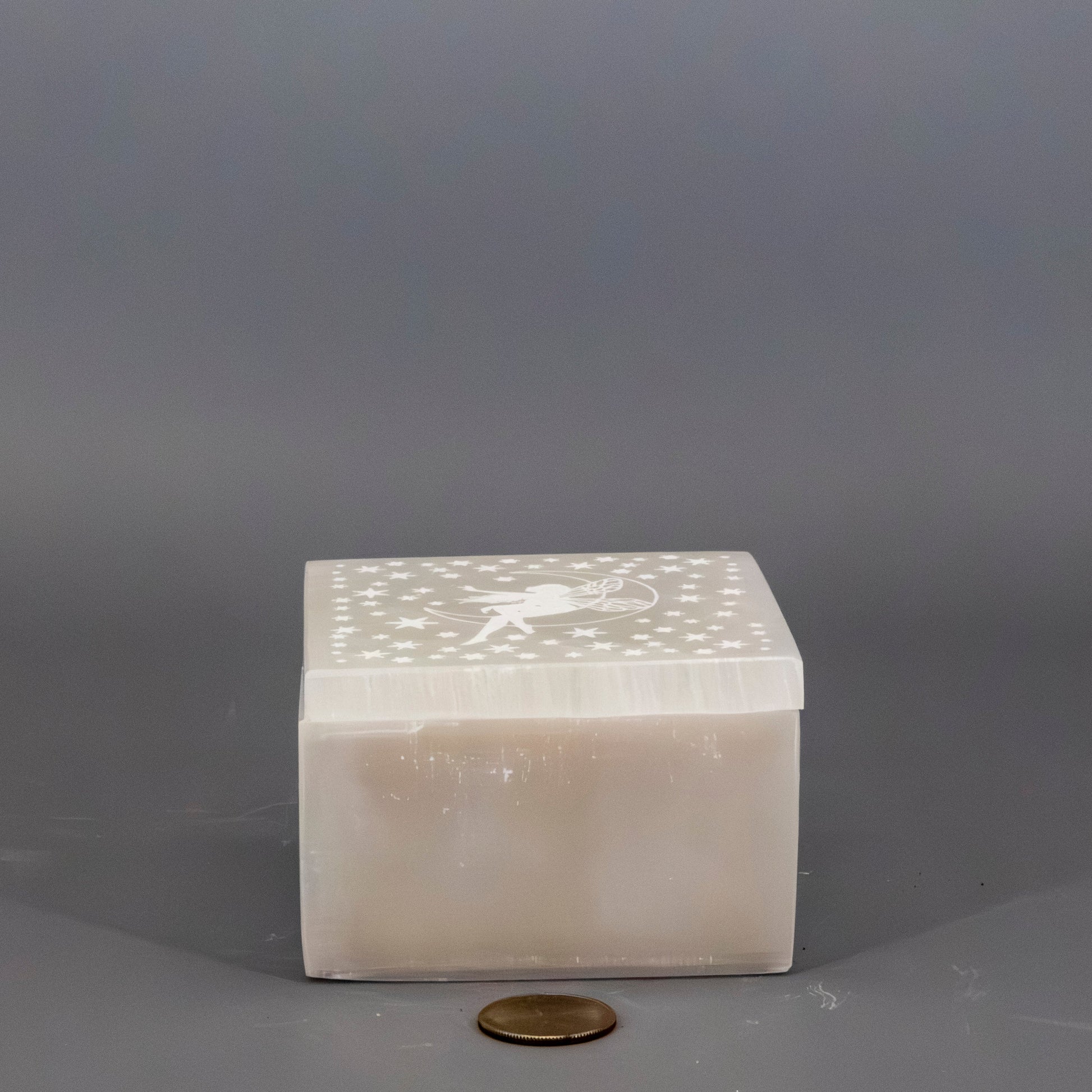 The Selenite "Forest Fairy" Jewelry Box combines natural elegance with mystical charm. Crafted from pure selenite, its translucent structure gently illuminates your treasured pieces, while the delicate forest fairy motif adds a touch of enchantment. Ideal for organizing and displaying fine jewelry, this box enhances both the protection and presentation of your valuables with a serene, expert-crafted design.