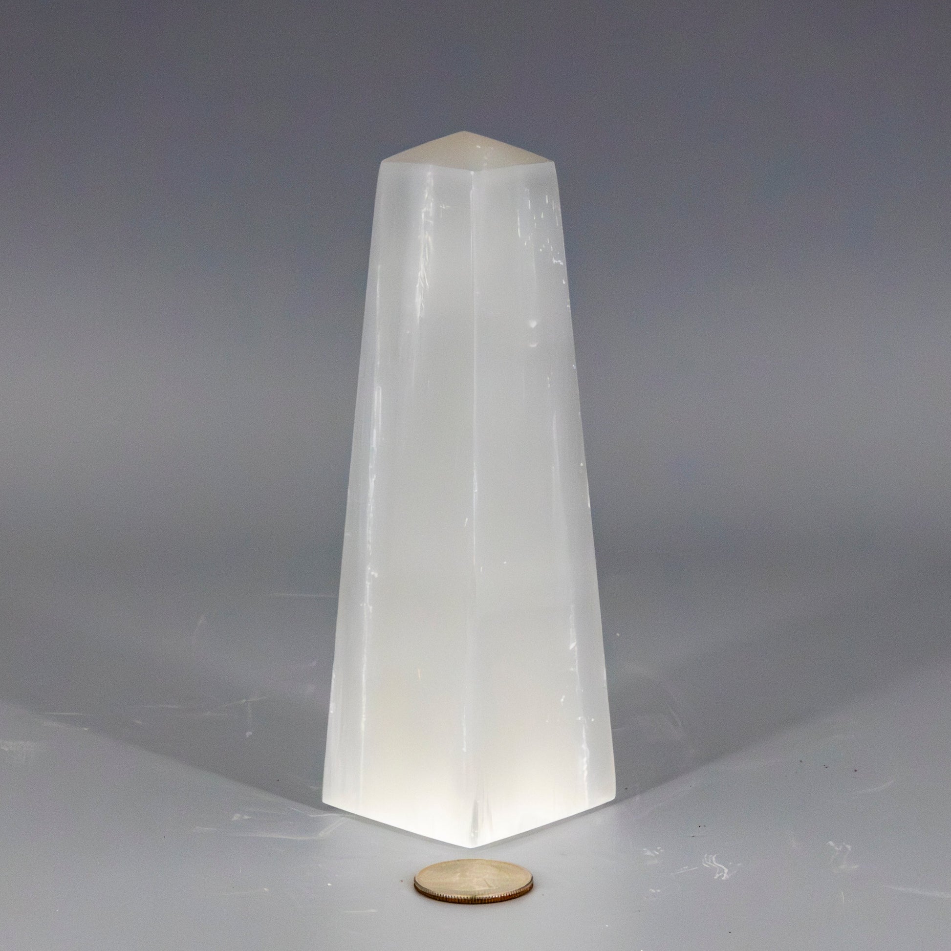 Crafted from pure selenite, this Obelisk Tower serves as a powerful focal point for energy cleansing and spiritual clarity. Its smooth, translucent structure amplifies intention and promotes mental calm, making it ideal for meditation or transformative rituals. Designed with precision, the tower’s shape directs energy flow, facilitating an enhanced connection to higher realms. Perfect for practitioners seeking to elevate their spiritual workspace or home environment with a natural tool of exceptional energetic resonance.