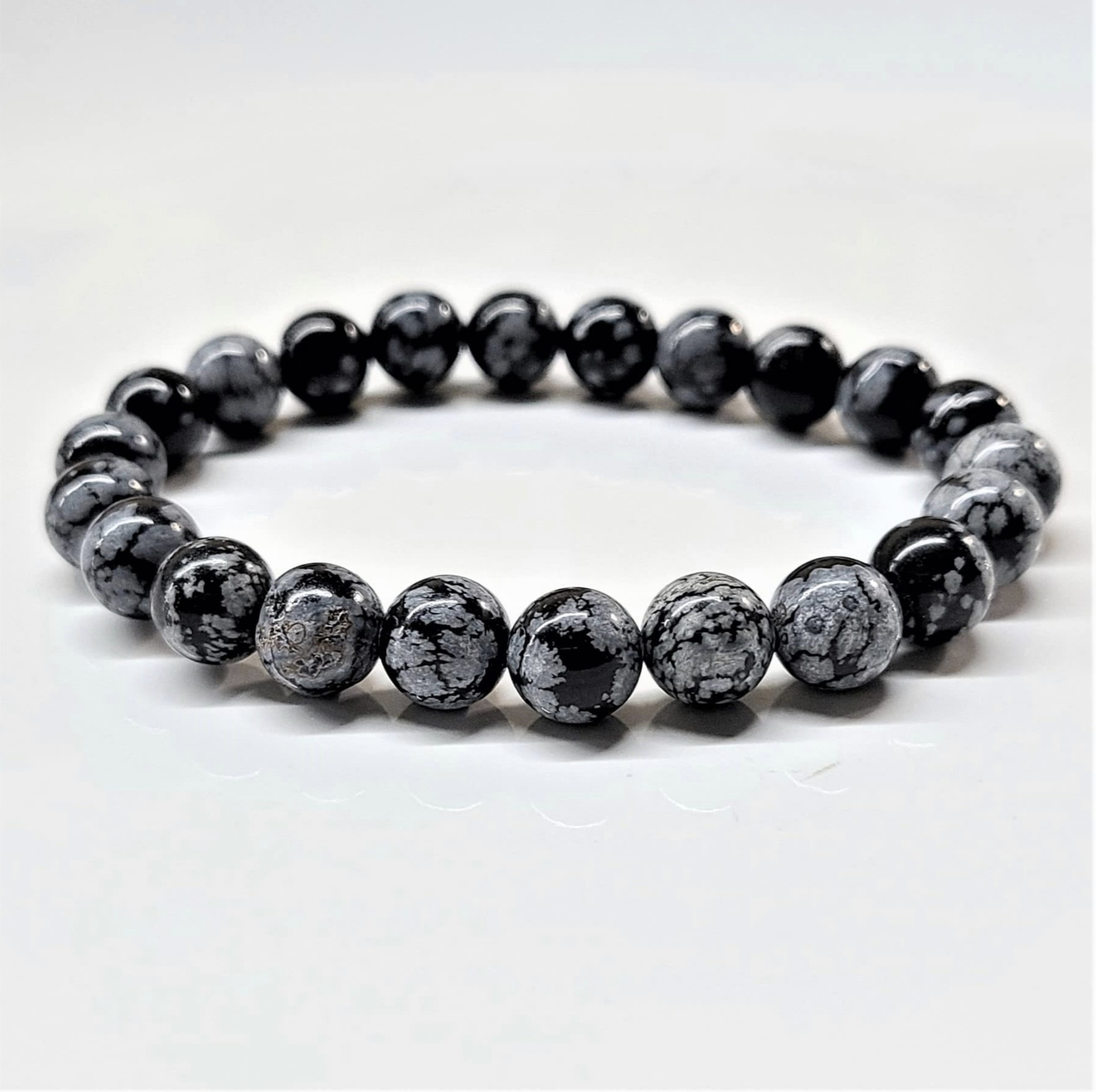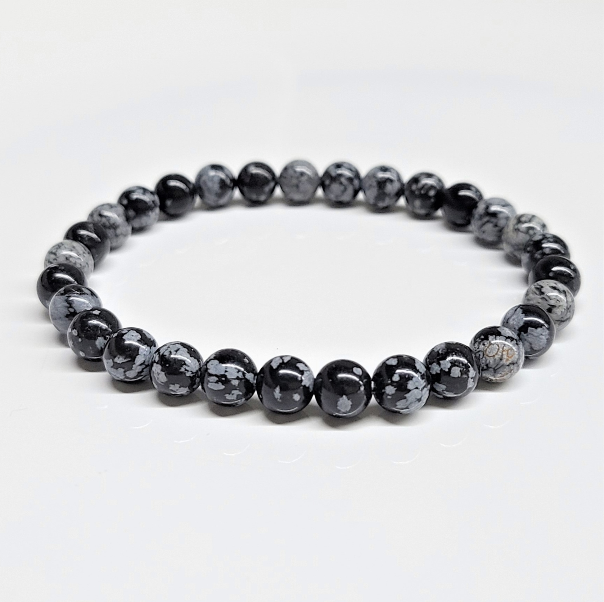 Snowflake Obsidian Round Bead Bracelet - Angelic Protection