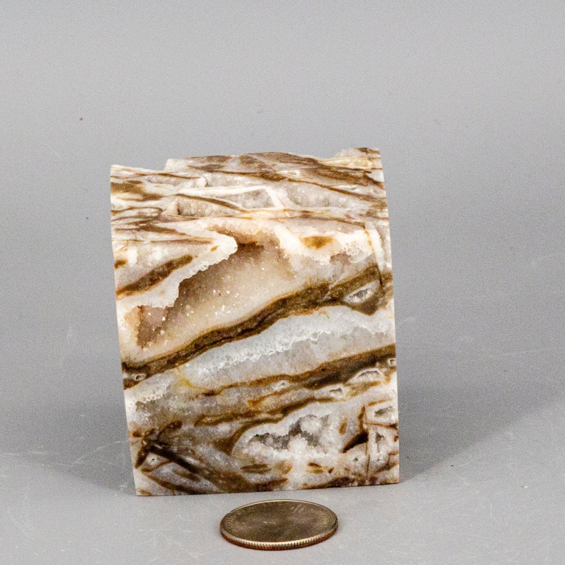 This rare Sphalerite Crystal Cube features distinctive druzy formations, showcasing the mineral's complex crystalline structure. Valued for its exceptional refractive index, this specimen displays characteristic metallic luster with subtle color variations. Collectors appreciate Sphalerite for both its scientific significance and aesthetic appeal, making it a noteworthy addition to any serious mineral collection. This cube features a cut corner so it will balance on a desktop. Each Druzy is filled with baby sugar quartz crystals.