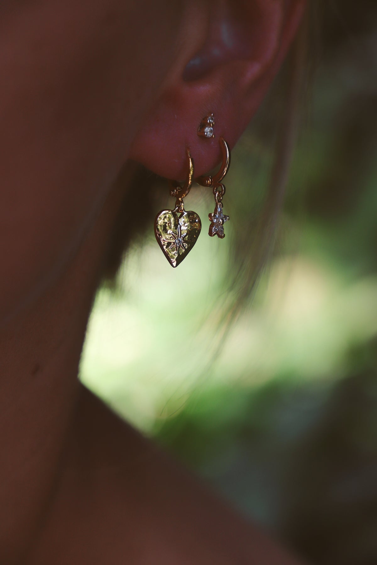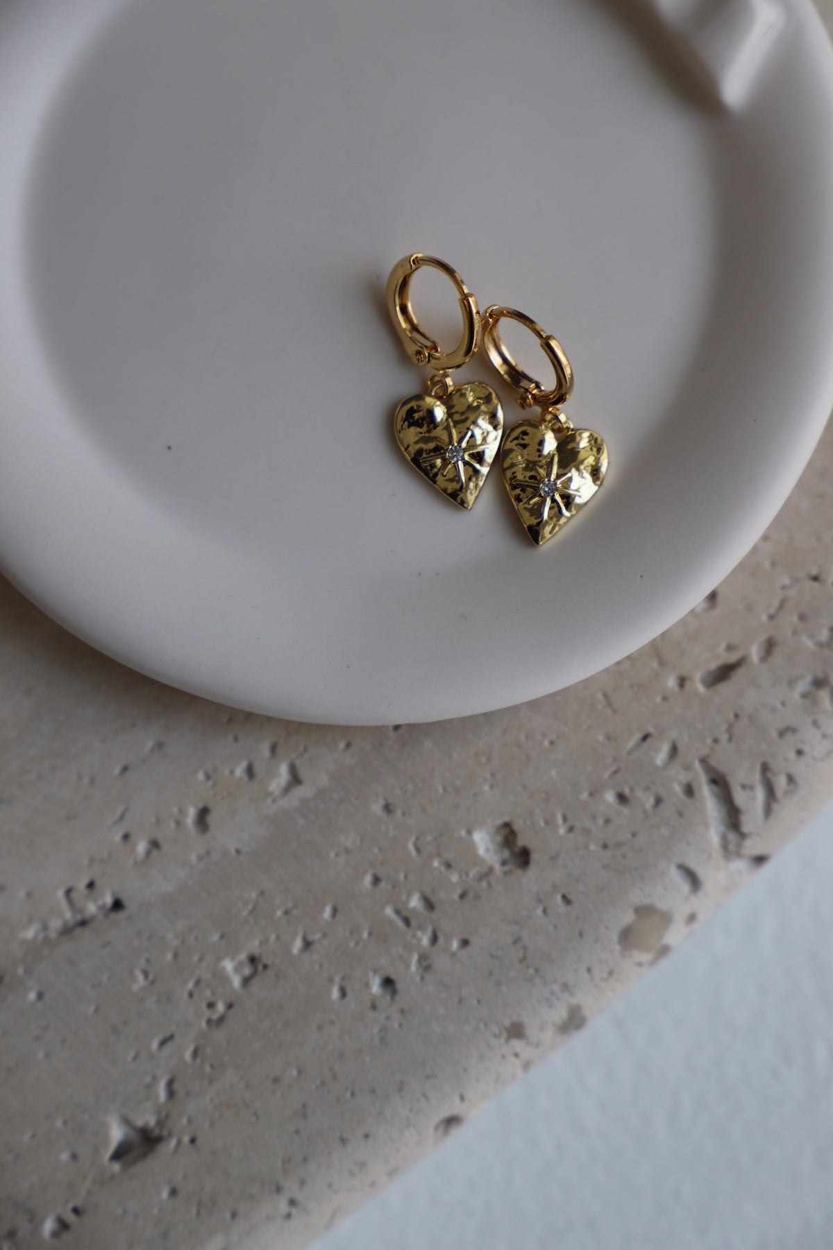 Heart Huggies with cz starburst