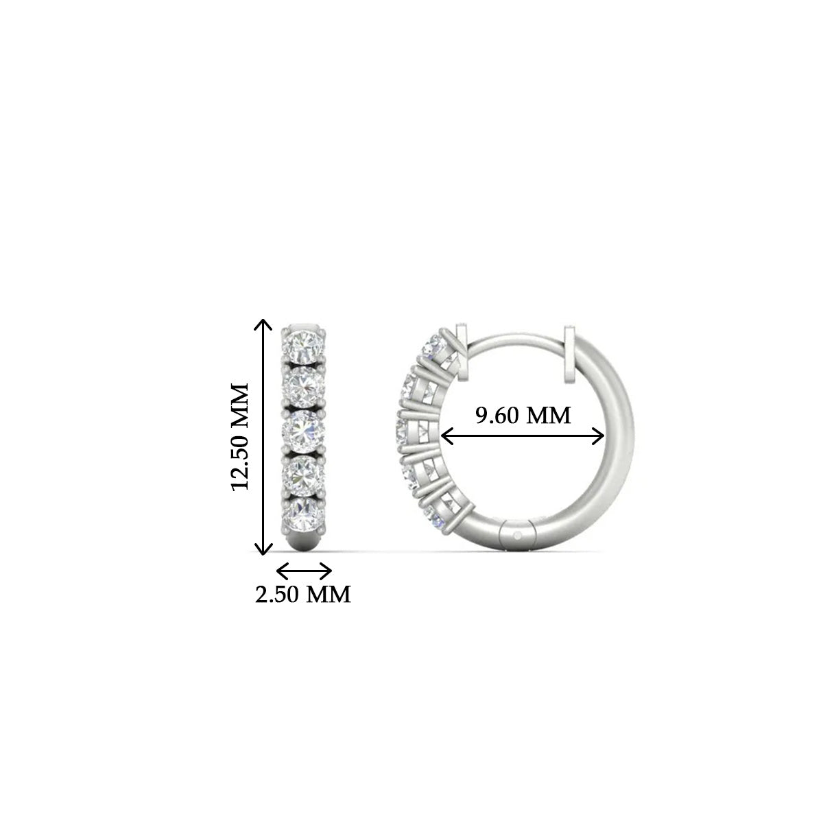 Carats: The carat options for Stunning 5 Stone Huggie Hoops are either 0.50 ct or 1.00 ct.