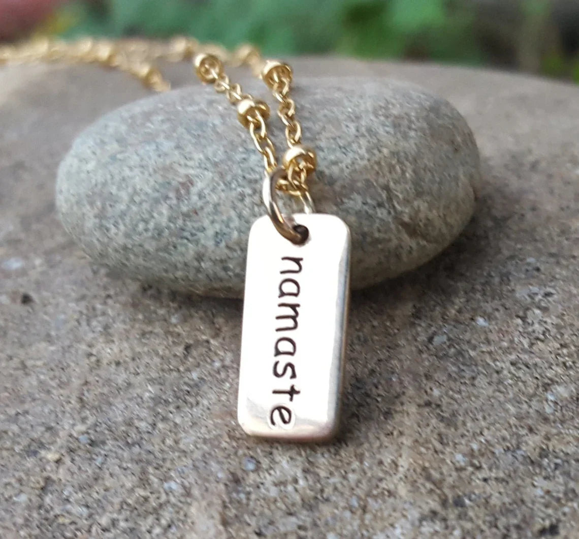 Tiny Namaste Necklace – Gold Word Tag on 16" Chain