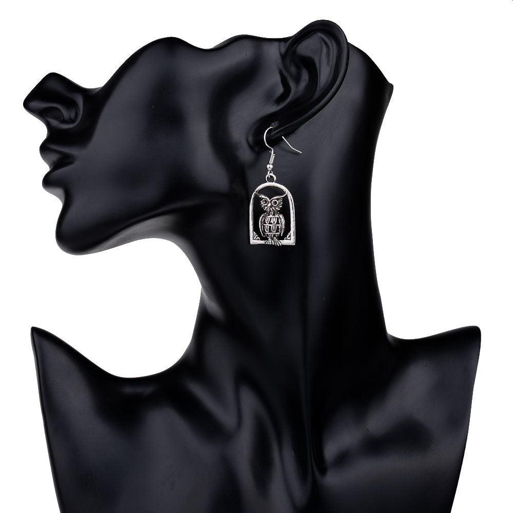 Vintage Owl Drop Dangle Retro Earrings-Owl Vintage Earrings