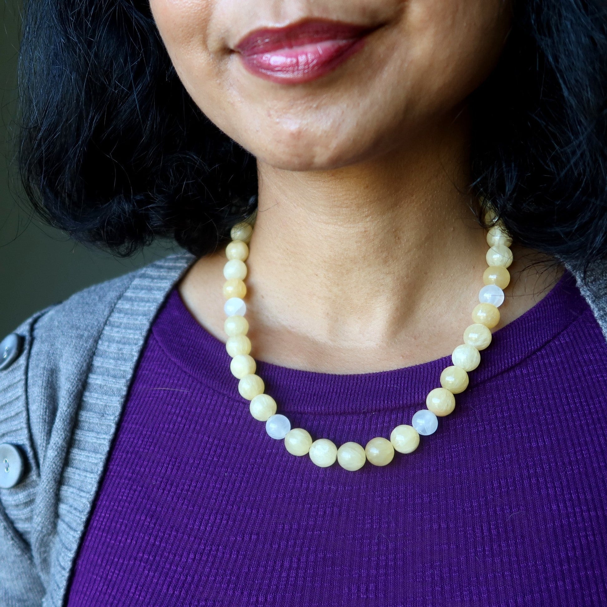 Your Calcite necklace conveys intense feelings. This healing jewel brings a smile to your face and a skip to your step. Present yourself in the brightest light.
